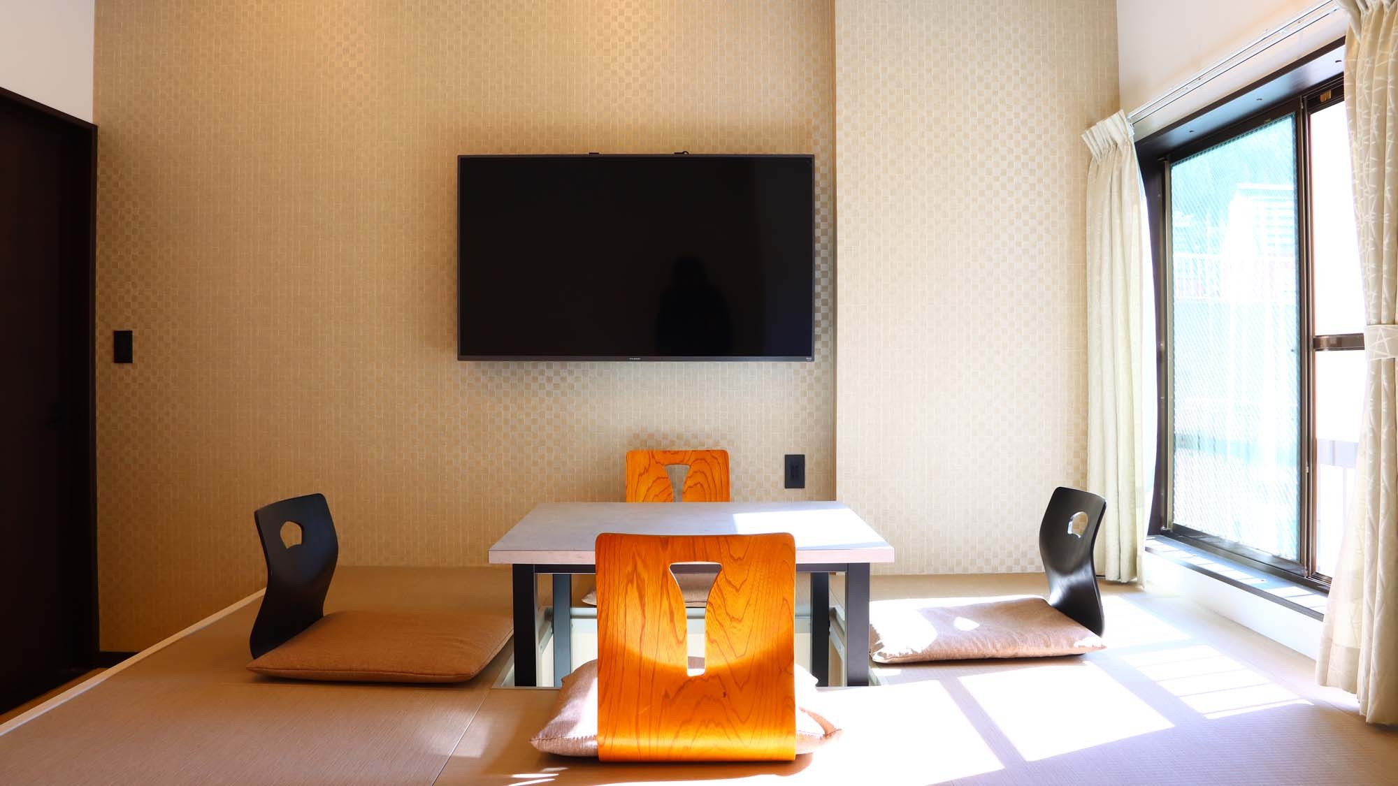 リニューアル済みの特別室です。広い室内は談話をお楽しみいただけるフローリングのリビングと小上がりの畳スペースがあります。布団を敷いて夜もおしゃべりが楽しめます♪