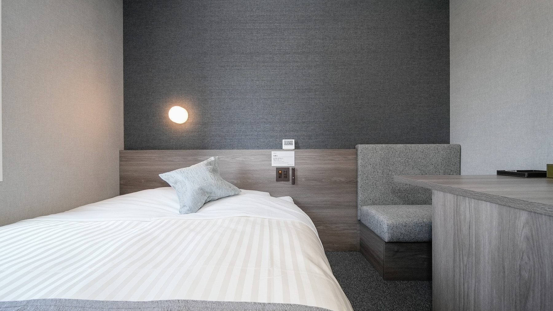 150cm幅のワイドベッド+広々デスクの【エクストラルーム】です。 広々デスクで仕事や作業がしやすいお部屋です。