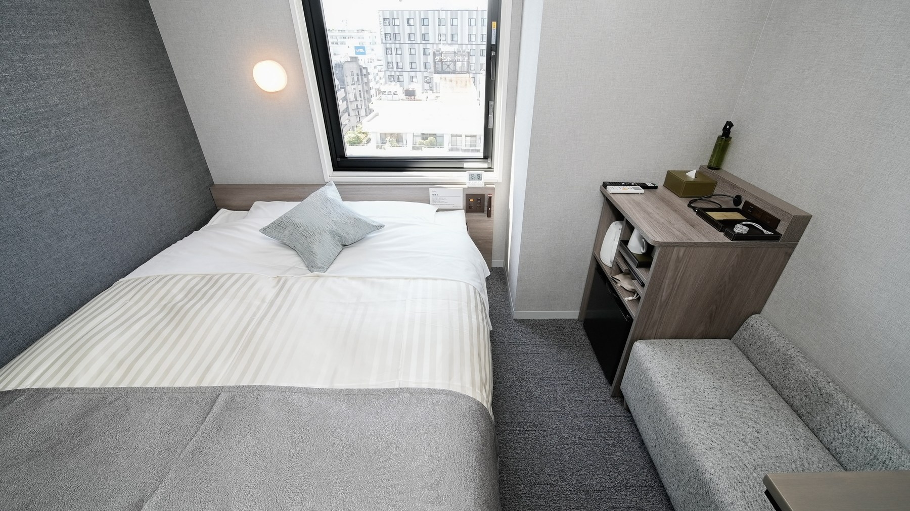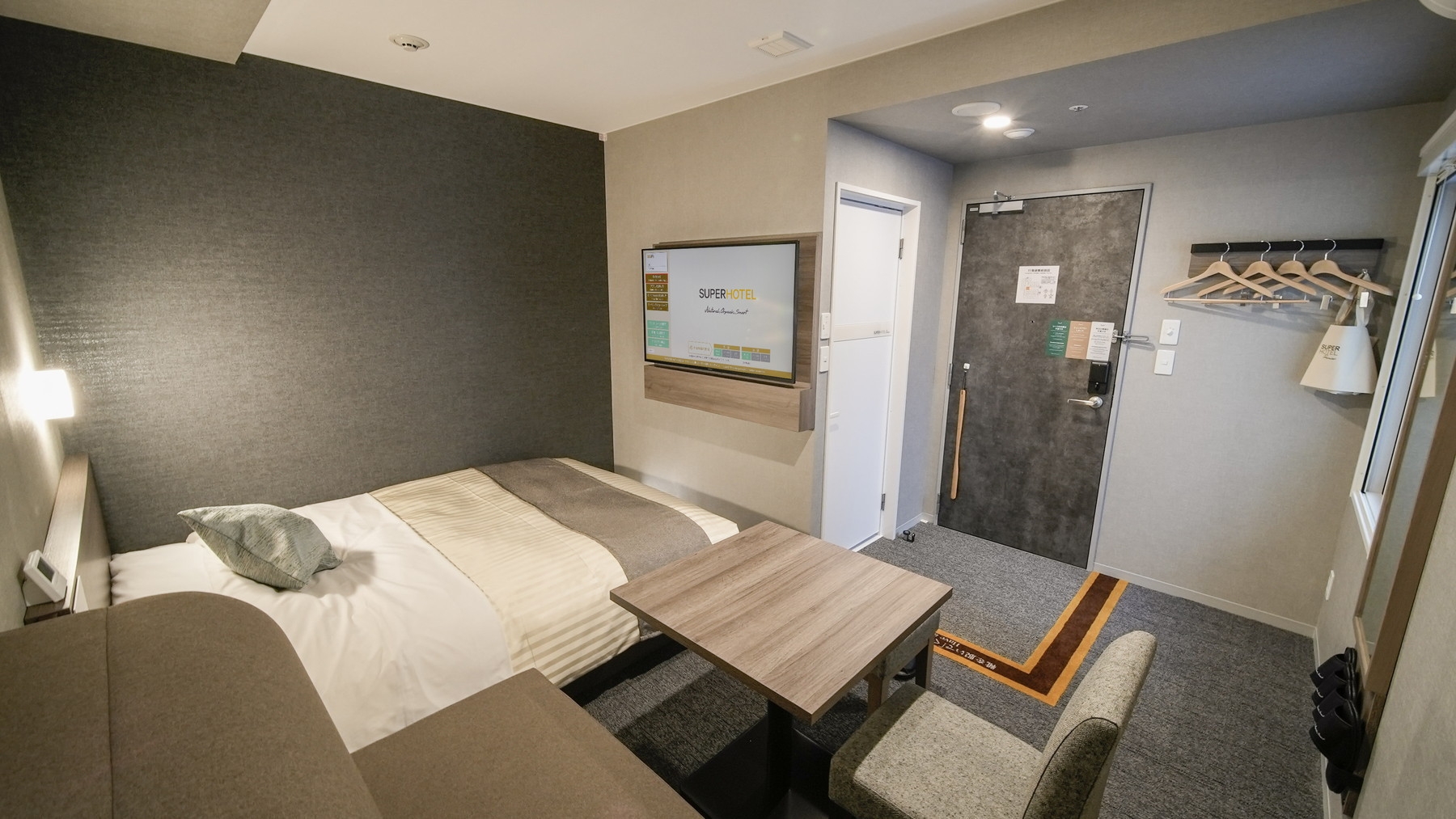 スーパーホテルで最もスタンダードなお部屋である【スタンダードルーム】です。 150cm幅のダブルサイズのワイドベッドでぐっすりお休み下さい。