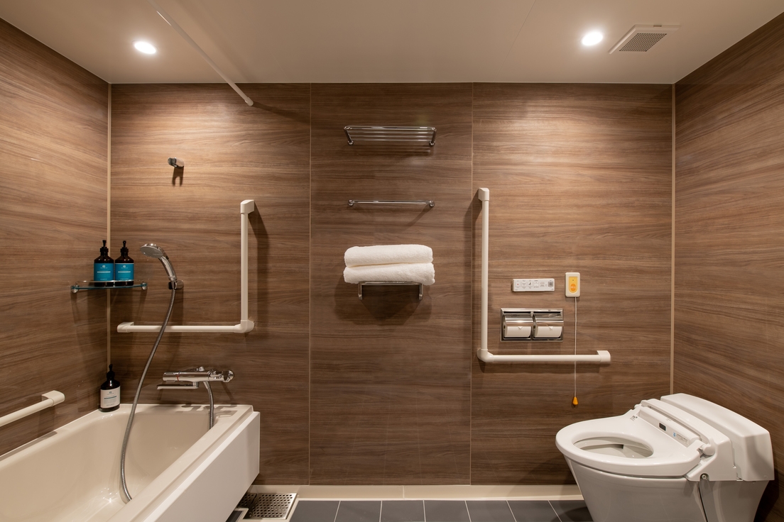 通常のシャワーとレインシャワーを設置しております。バスタブはありません(ユニバーサルルーム除く)。