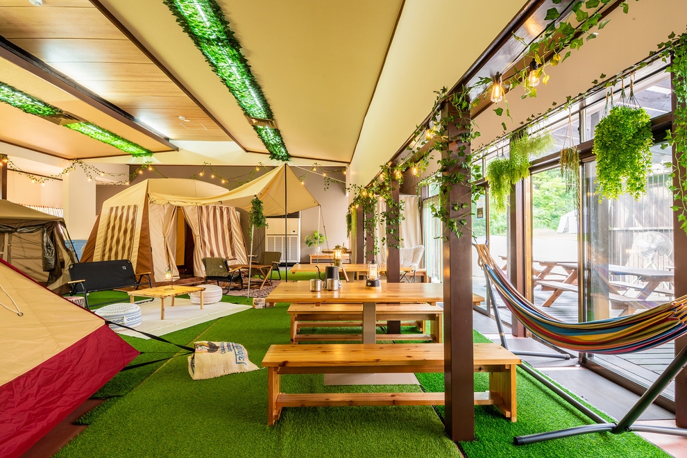 天候を気にせず利用できる贅沢な一棟貸切の室内グランピング場
