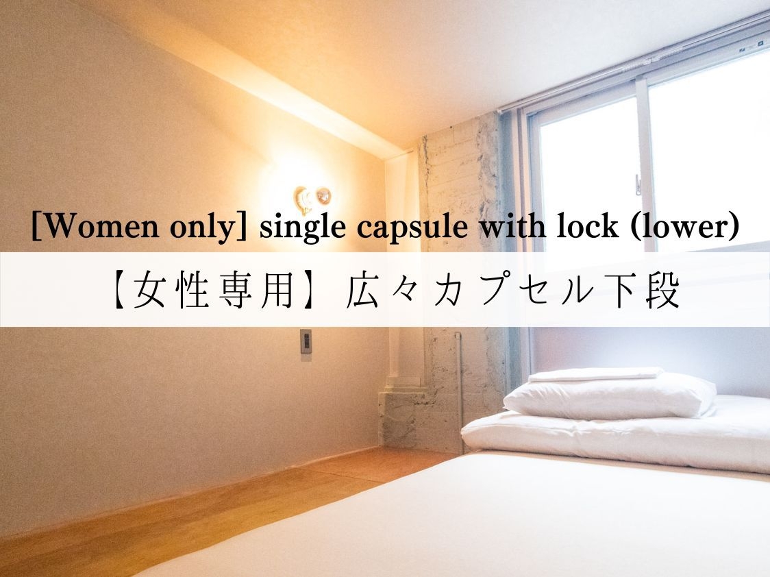 女性専用の広々としたカプセルルームです。全部屋鍵付き、バス・フェイスタオル付き ※男性のお客様はお泊りいただけません