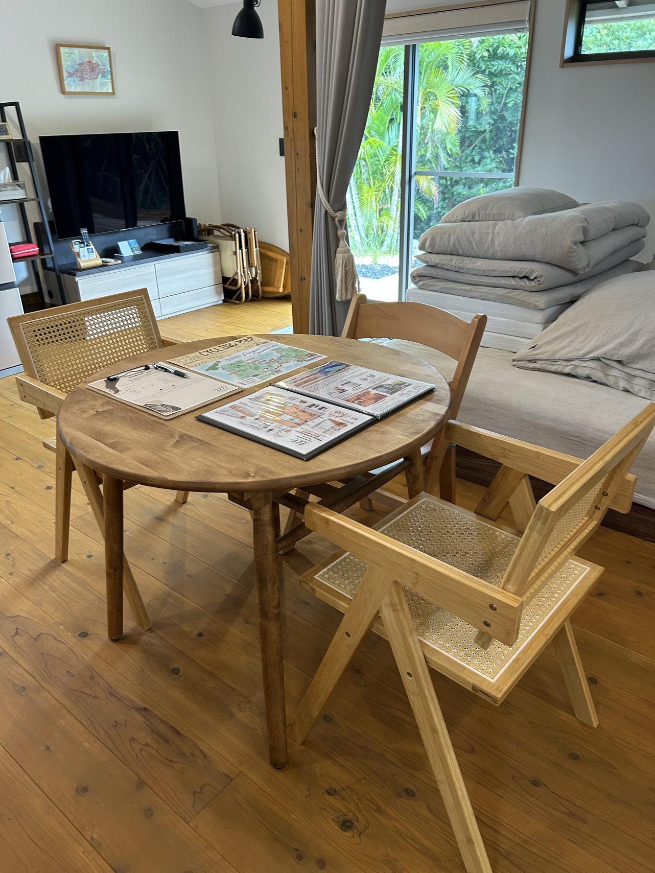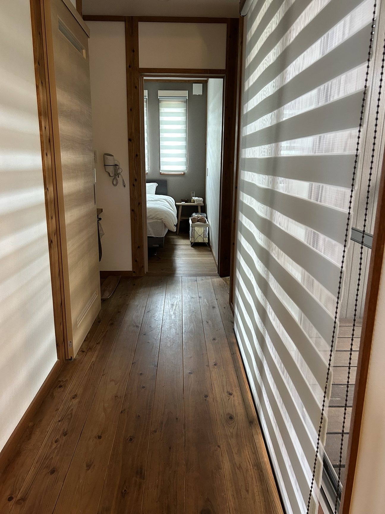 無垢の杉板フローリングの小さな静かで隠れ家のような宿。3名様宿泊時は、マットレスと布団をご用意します。