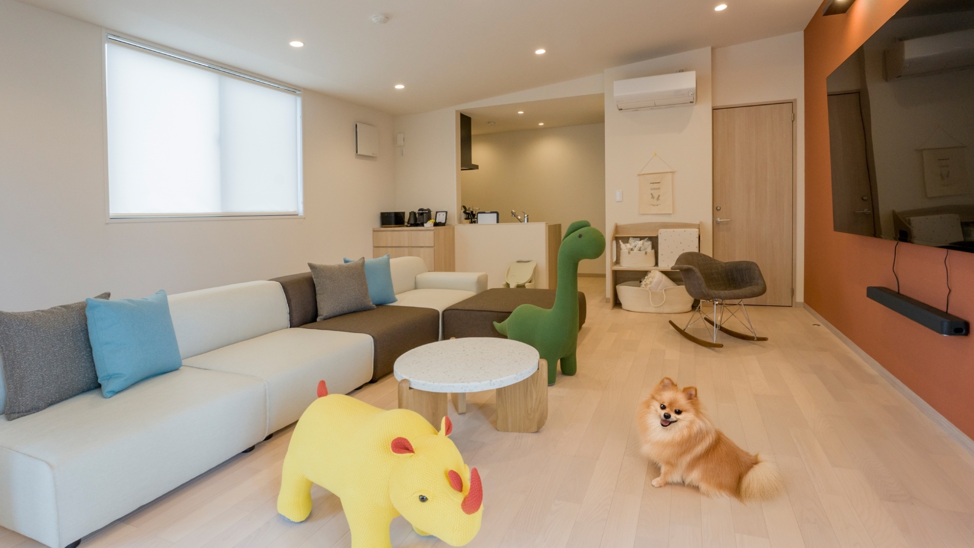 【ペット可】【1階】寝室、畳コーナー(ダブル4台・シングル敷布団2組)・ジャグジー風呂【2階】リビング・85インチTV・ダイニング・キッチン・シャワーブース