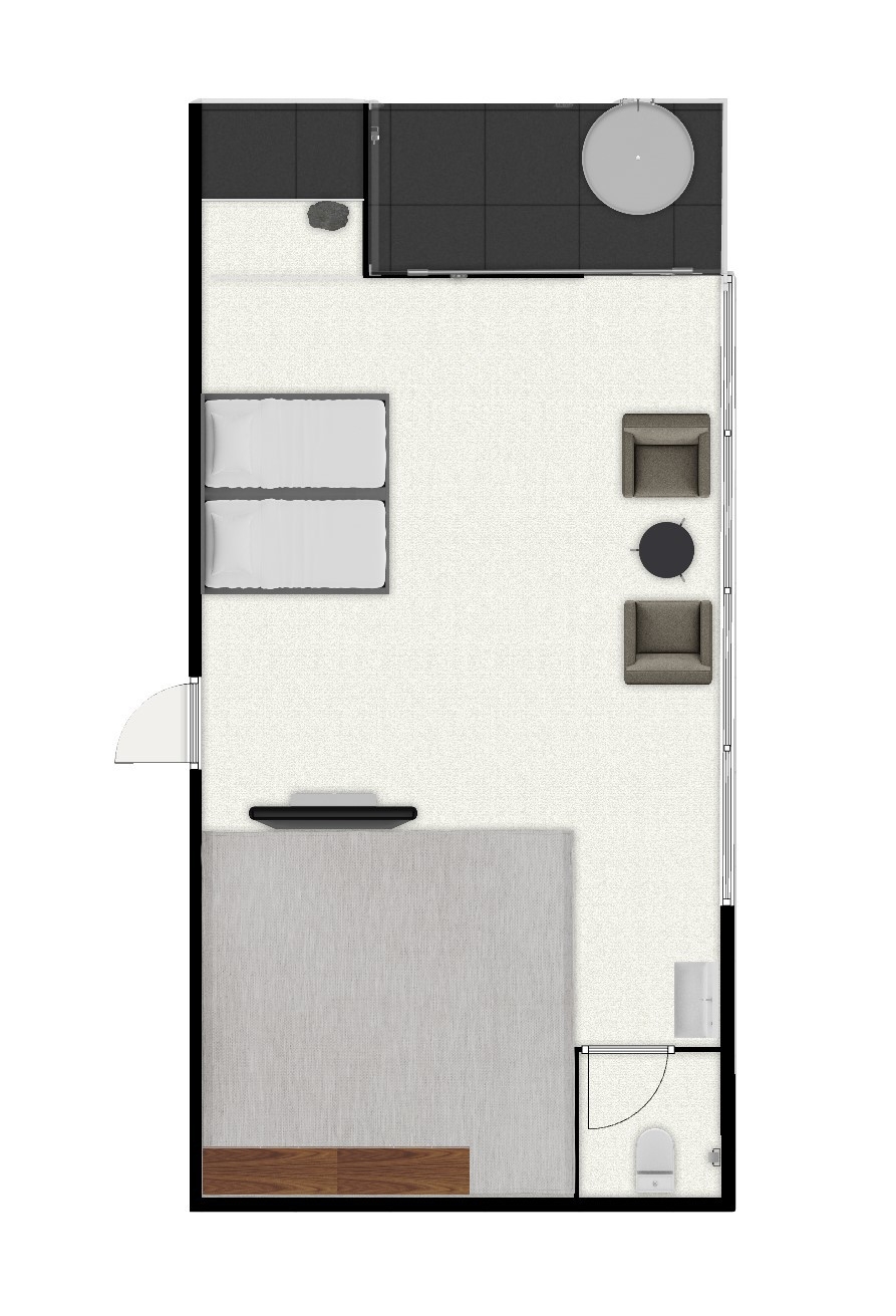27平米 ベッド×2台(セミダブルベッド) エキストラベッド×1台(シングル) 【お部屋の設備】 冷蔵庫/ケトル/テレビ/テーブル/ソファー/サイドテ