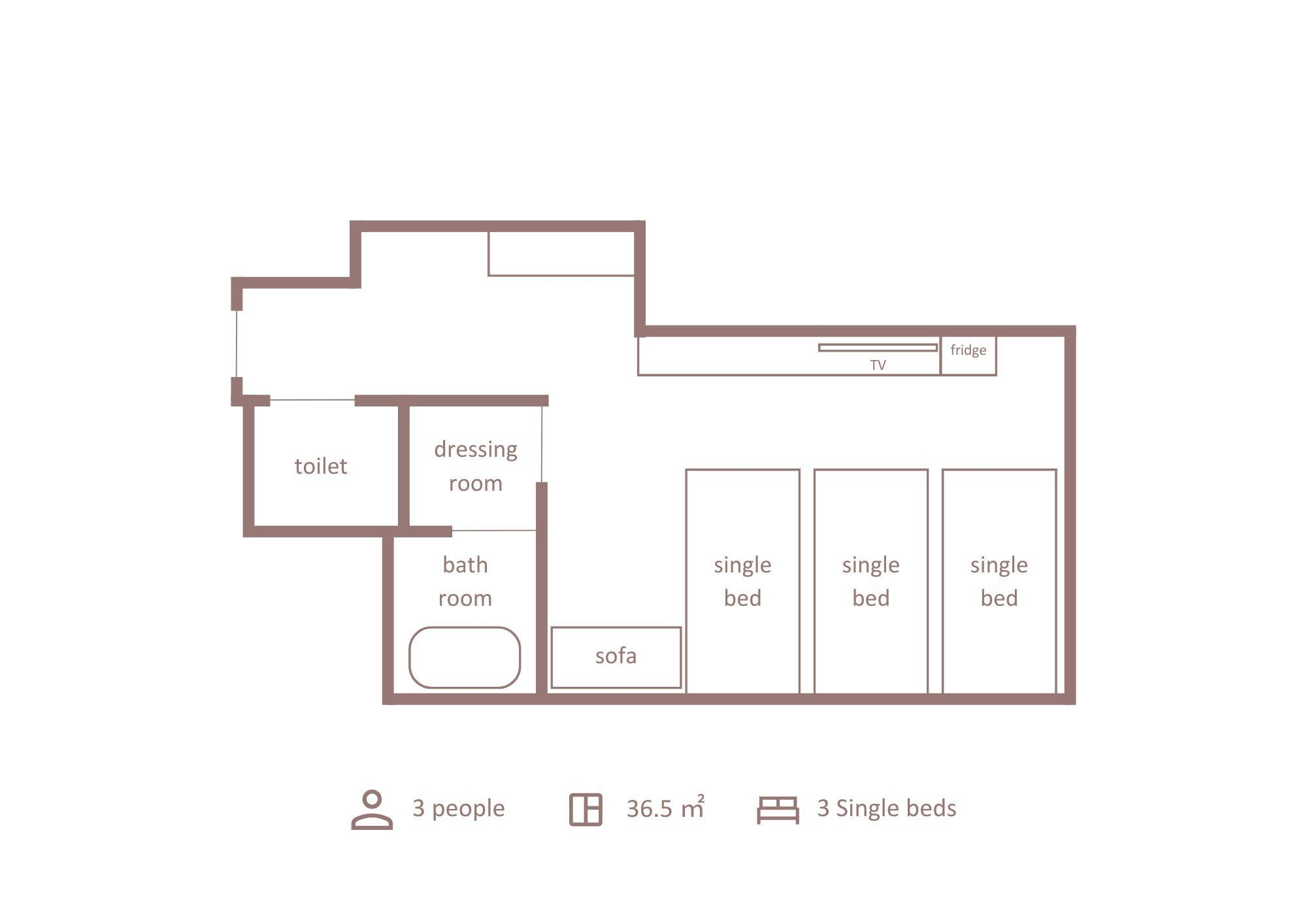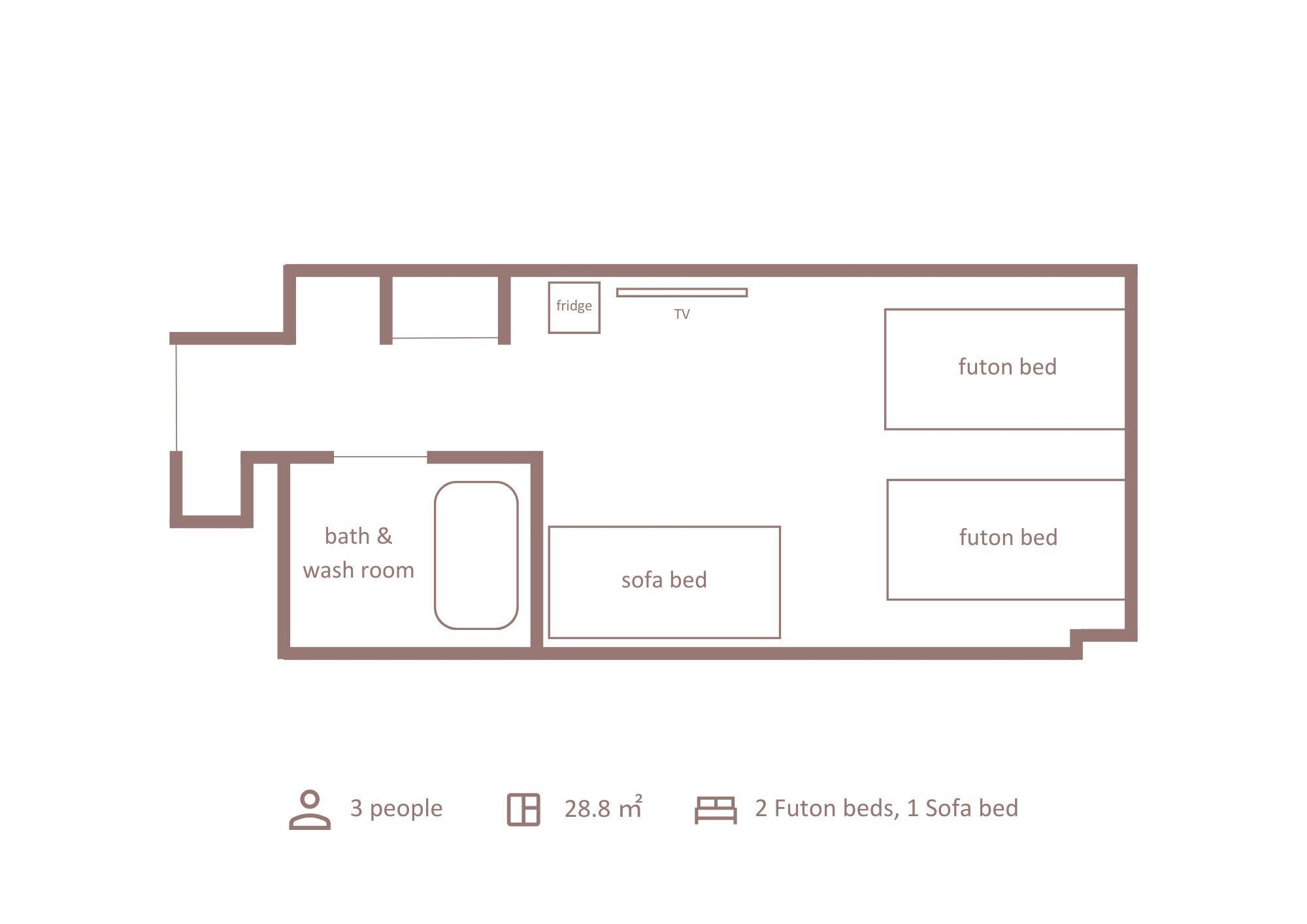 3名以上のご宿泊にぜひ使っていただきたいこのお部屋は、