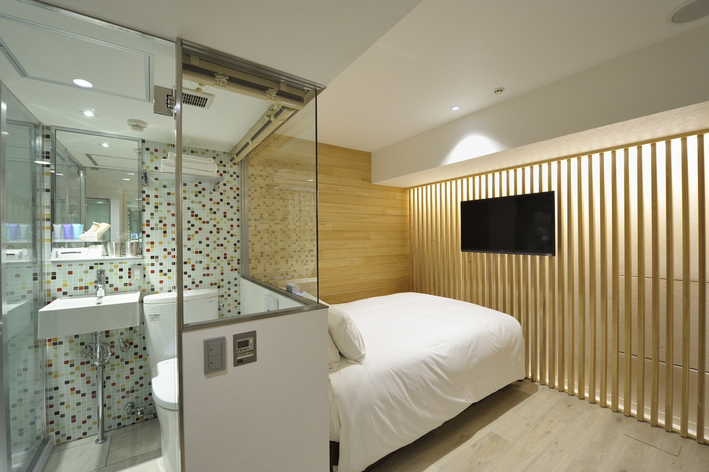■広さ:19平方メートル■Bed:スランバーランド製のダブルベッド(W140cm×L203cm)■LAN:無線wifi■シャワーブースのみ(バスタブなし)