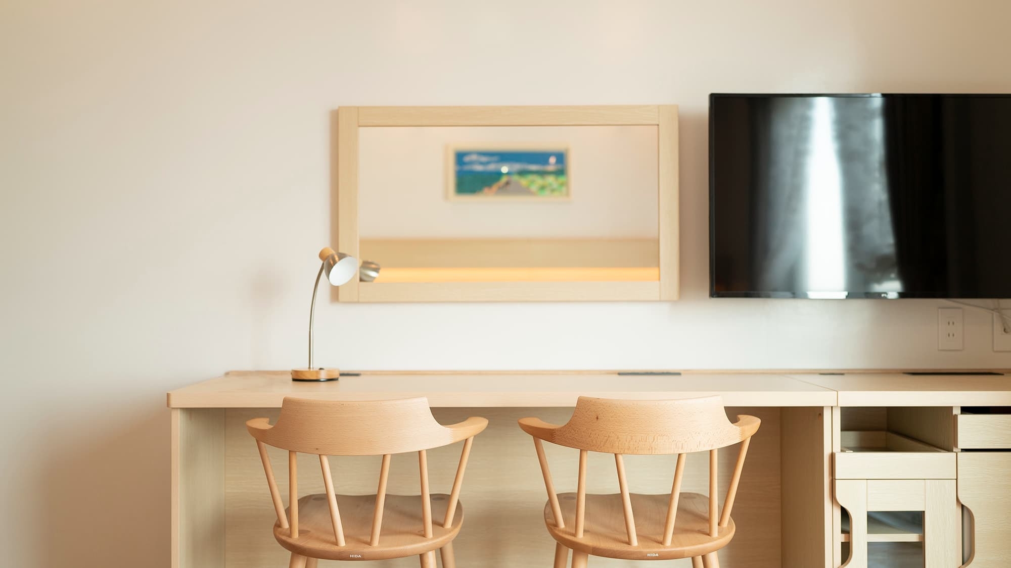 ■幅120センチの広々セミダブルベットが2台(定員1〜2名) ■240センチ幅のライティングデスク ■全客室、洗濯乾燥機付き