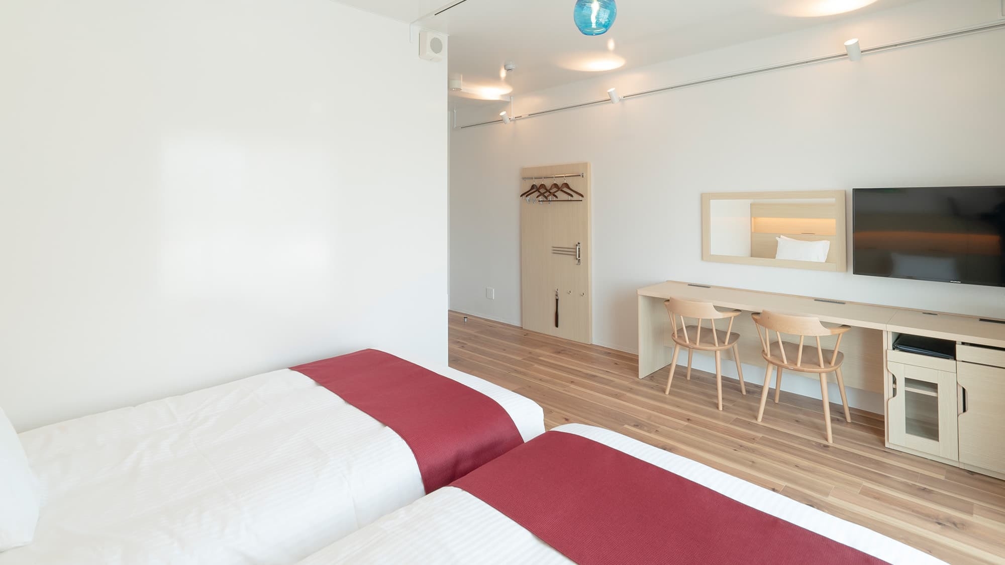 ■幅120センチの広々セミダブルベットが2台+エキストラベッド(マットレス)1台 ■240センチ幅のライティングデスク ■全客室、洗濯乾燥機付き