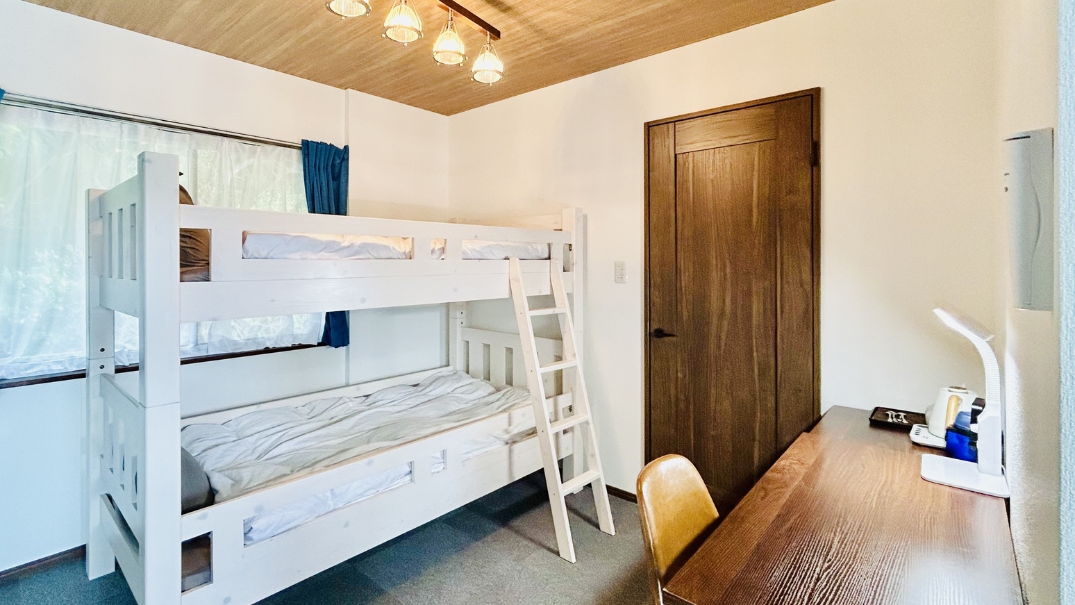 屋外ジャグジー付きのお部屋 セミダブルベット2台+バンクベット1台、温水洗浄機能付きトイレ、シャワー室付き