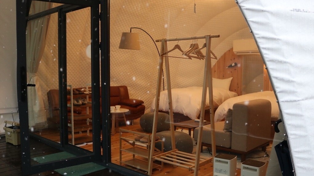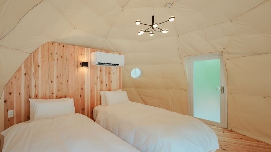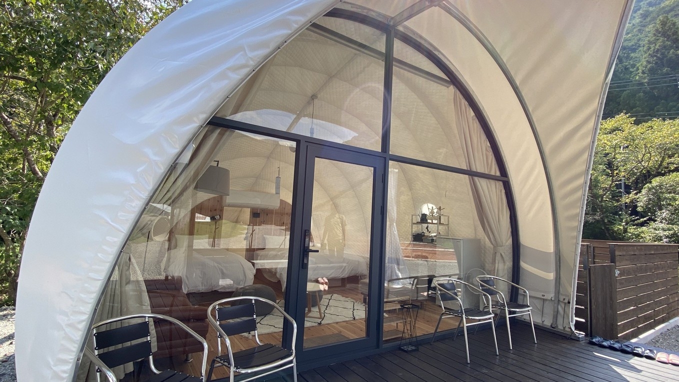 最大5名までご宿泊可能で、そのユニークな見た目や全面ガラス張りのゴージャスで開放感ある造りから グランピング施設で人気のお部屋です