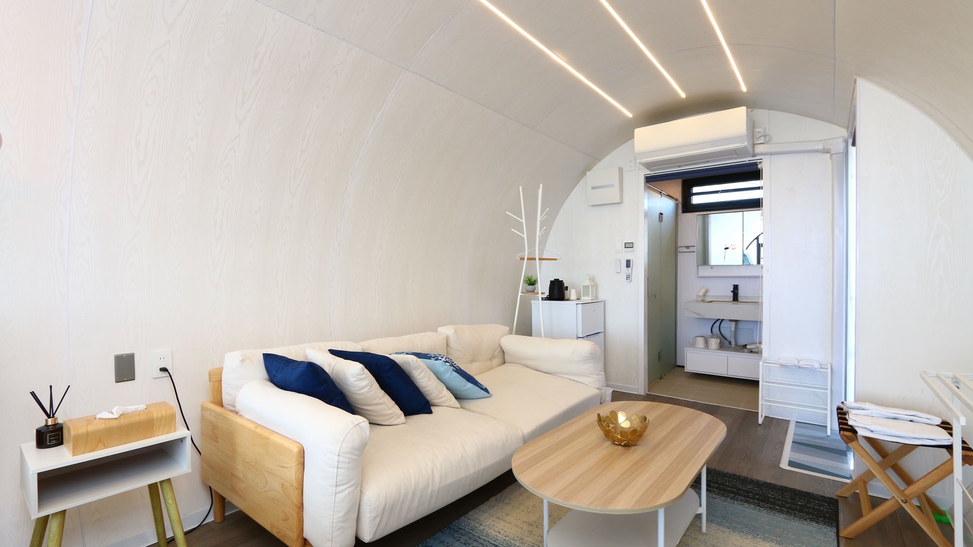海辺で迎える爽やかな朝〜朝食付きリゾートステイプラン〜海が目の前に広がる絶景ロケーションで、自由な過ごし方ができる素泊まり感覚に、朝だけしっかり楽しめる朝食付きの宿泊プランです♪◆◇ 朝はカフェでゆったり朝食 ◇◆朝食は、施設内カフェにてご提供いたします。海を眺めながら気軽に楽しめる内容となっております。◆朝食メニュー(例)・サラダ ヨーグルト マンゴージュース or オレンジジュース・目玉焼き 知多ポークベーコン 知多ポークハム 知多ポークウインナー・バケット4個 パン2個 バター 豊浜産しらす自家製ソース(バケットおかわり可)・コーヒー or アールグレイ※朝食内容は季節や仕入れ状況により変更となる場合がございます。朝の心地よい潮風とともに、ゆったりとしたリゾートの朝時間をお過ごしください。※本プランに夕食は含まれておりません。◆◇ お子様のお食事について ◇◆お子様用の朝食メニューをご希望の場合は、現地にてご希望をお伺いしながらご提供いたします。お子様メニューの料金は、現地カフェにてご精算ください。小さいお子様に関してはお子様プレートをご用意しております。アレルギー等ございましたらお早めにお申し付けください。お部屋タイプ━━━━━★◆大型トレーラーハウス(快適・プライベート重視)家のような安心感と、ゆったり過ごせる空間。プライベート感を大切にしながら、リゾート滞在を快適にお楽しみいただけます。お部屋からは、目の前に広がる海の景色を堪能でき、夕暮れには水平線に沈む美しい夕陽、夜には満天の星空が旅の時間を静かに彩ります☆◆◇ 初心者でも安心の快適設備 ◇◆・各客室にシャワールーム完備・アットホームで親しみやすい雰囲気・灯台ラーメンで人気の灯台グループが運営初めての方でも、安心してご利用いただけます♪◆◇ 無料送迎あり(要予約) ◇◆野間駅・内海駅まで無料送迎に対応しています。※ご希望の方は予約時にお申し付けください。・当日連絡が取れる携帯電話番号をお教え下さい。・送迎が必要な場合:内海駅・野間駅への到着時間をお申し付け下さい。