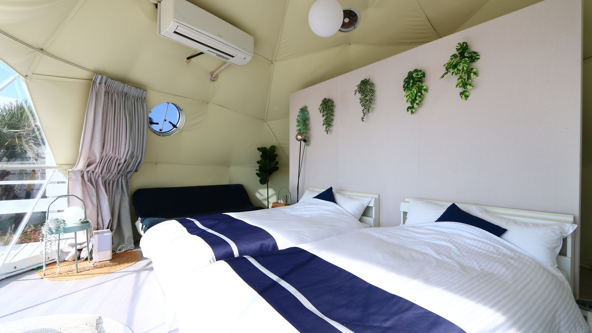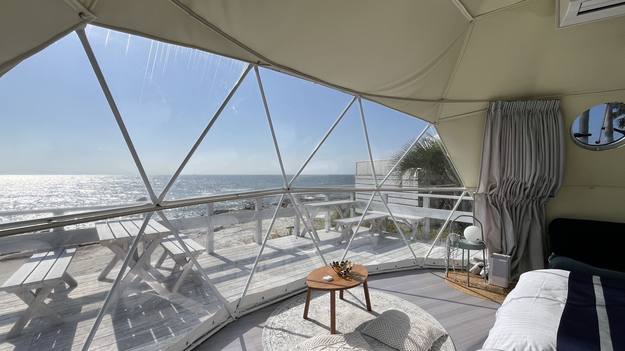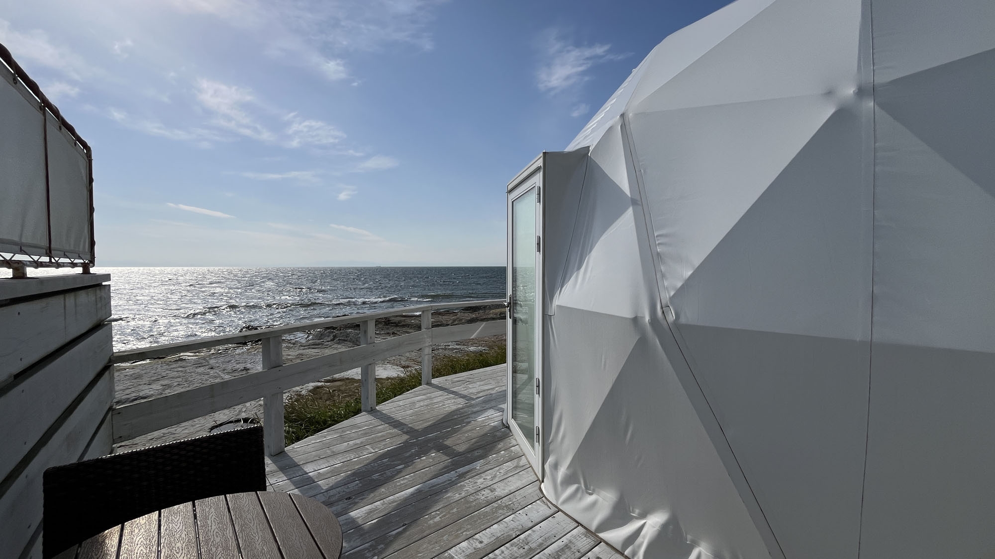海と夕陽に包まれる贅沢なひととき〜夕食付きプラン〜海岸が目の前に広がる絶景ロケーションで、夕陽・星空・波音を感じながら特別な時間を過ごせる夕食付きプランです。併設レストランでは、パスタ・ピザ・ステーキなどカジュアルなカフェメニューをご提供しています。海を眺めながら、大切な人とゆっくり食事をお楽しみください♪※朝食は付かないプランです。お部屋タイプ━━━━━★◆ドームテント(開放感◎)海風と太陽を感じる、人気の高いグランピングテント。ドームテント1は2に比べテラスが広く、さらに開放感が感じられます!◆大型トレーラーハウス(快適×プライベート)屋内の居心地を重視したい方におすすめの、安心感のある客室。どちらのお部屋からも、テラスに出れば海を独り占めできる絶景ビュー。夕暮れには、水平線へゆっくり沈む夕陽が広がり、夜は街明かりに邪魔されない満天の星空が頭上いっぱいに☆◆◇ 快適に過ごせる安心ポイント ◇◆客室内にはシャワールーム完備で、アウトドアが初めての方でも快適。さらに、灯台ラーメンでおなじみの灯台グループが運営しているため、サービス面も安心してご利用いただけます♪◆◇ お子様のお食事について ◇◆お子様用のメニューをご希望の場合は、現地にてご希望をお伺いしながらご提供いたします。お子様メニューの料金は、現地レストランにてご精算ください。小さいお子様に関してはお子様プレートをご用意しております。アレルギー等ございましたらお早めにお申し付けください。翌朝は自由気ままに━━━━━━━━◆朝食の時間に縛られず、・波音を聞きながらゆっくり過ごす・海岸を散歩してリフレッシュなど、自由度の高い滞在が叶います♪◆◇ 無料送迎あり(要予約) ◇◆野間駅・内海駅まで無料送迎が可能です。※ご希望の方は予約時にお申し付けください。・お越しの際の交通手段をお教えください。・ご到着が17:00を過ぎる場合は連絡をお願いします。・当日連絡が取れる携帯電話番号をお教え下さい。・送迎が必要な場合:内海駅・野間駅への到着時間をお申し付け下さい。