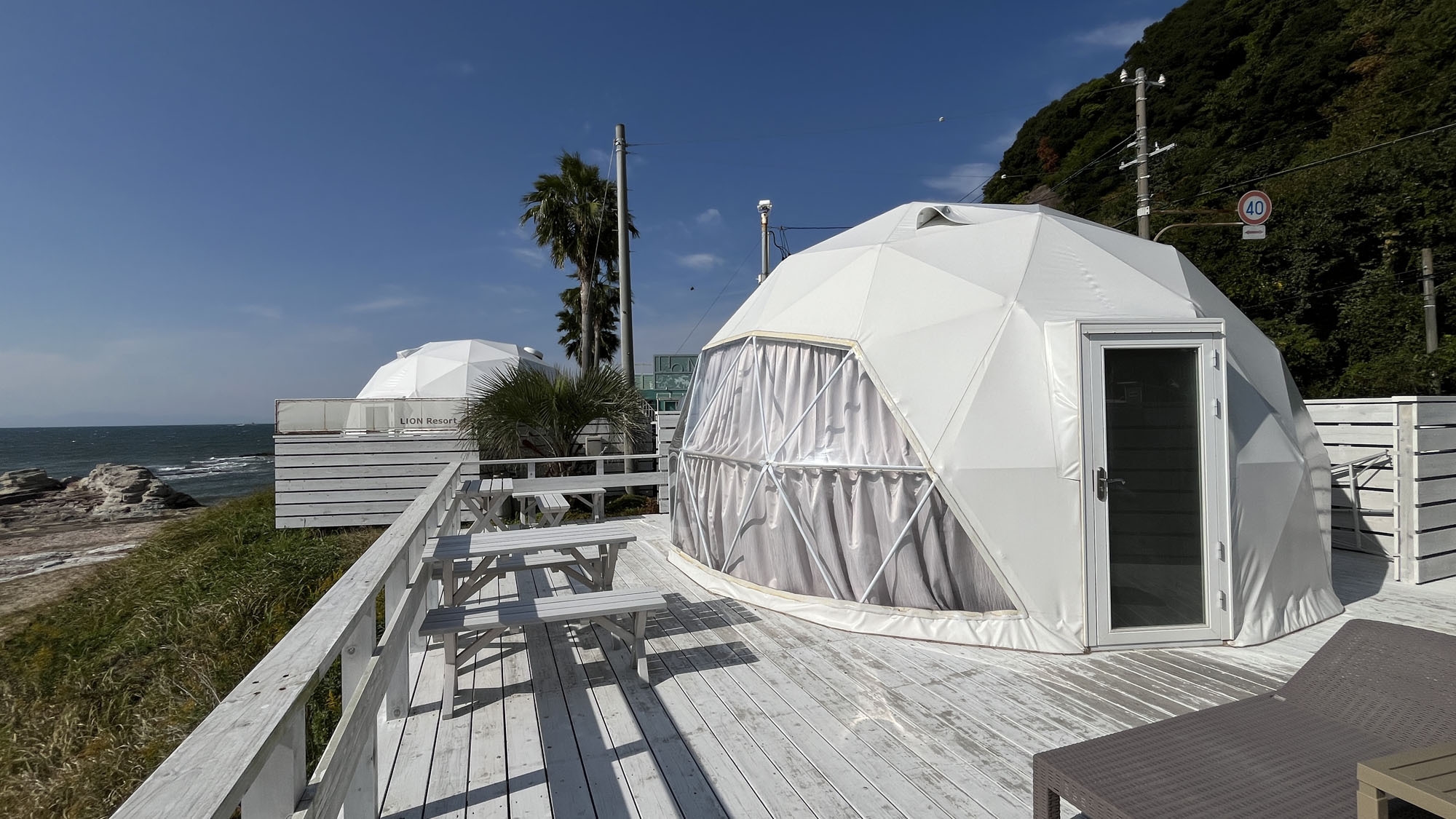 夕陽と星空を独り占め〜海沿いで自由に過ごす《素泊まりプラン》〜海を目の前に望むグランピング施設で、夕陽・星空・静かな波音を独り占めできる特別なステイ。気ままに過ごせる“素泊まり”でライオンResortを楽しんでください♪お部屋タイプ━━━━━★◆ドームテント(開放感たっぷり)広々とした空間で、海と空を間近に感じられる人気のお部屋。ドームテント1は2に比べテラスが広く、さらに開放感が感じられます!◆大型トレーラーハウス(プライベート重視)人目を気にせず、静かに過ごしたい方におすすめの快適空間。どちらのお部屋からも、時間とともに色が移り変わる海と空のパノラマビューをお楽しみいただけます。とくに夕方には、水平線に沈む美しい夕陽が目の前に広がり、忘れられない景色に☆お食事なしの“自由な滞在”が魅力━━━━━━━━━━━━━━◆素泊まりだからこそ、過ごし方は思いのまま。・好きな食材を持ち込んで気軽に楽しむ・近隣の飲食店で地元グルメを堪能・あえて何もしない贅沢なひとときあなたのペースで、自由にリラックスできる時間をご提供します♪夜は満天の星空に包まれて━━━━━━━━━━━◆晴れた夜には、視界いっぱいに広がる満点の星空が。ゆったりと流れる時間の中で、心ほどけるひとときをお過ごしください。◆◇ 安心の運営&初心者でも快適 ◇◆灯台らーめんでおなじみの灯台グループが運営するグランピング施設。接客もお食事提供も慣れたスタッフが担当するため、初めてのグランピングでも安心。シャワールーム完備で、アウトドア初心者の方にもおすすめです。◆◇ 無料送迎あり(要予約) ◇◆野間駅・内海駅まで無料送迎いたします。※ご希望の方は予約時にお申し付けください。・お越しの際の交通手段をお教えください。・ご到着が17:00を過ぎる場合は連絡をお願いします。・当日連絡が取れる携帯電話番号をお教え下さい。・送迎が必要な場合:内海駅・野間駅への到着時間をお申し付け下さい。
