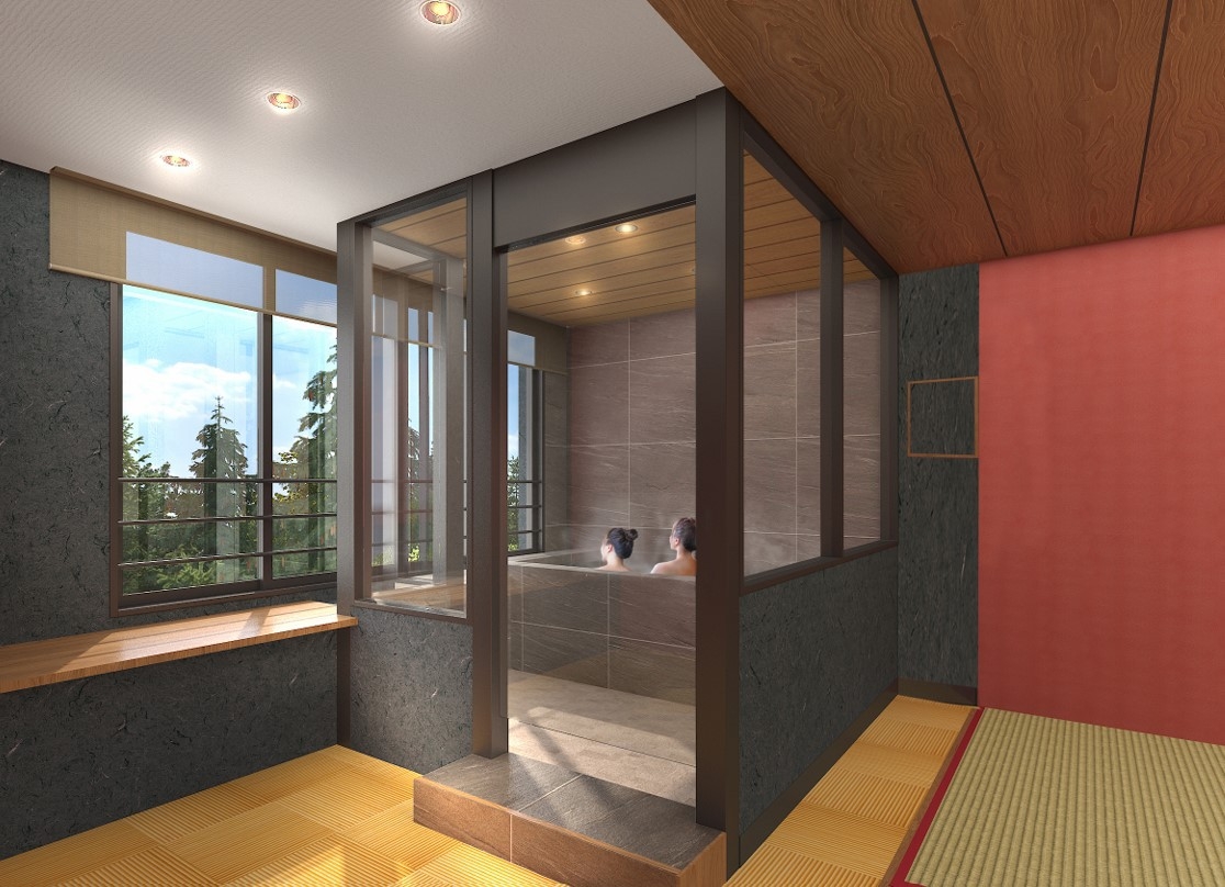 全室渓谷を眺める温泉付き個室露天風呂でご入浴頂けます。 日常の喧騒を忘れて心ゆくまで、お寛ぎください。