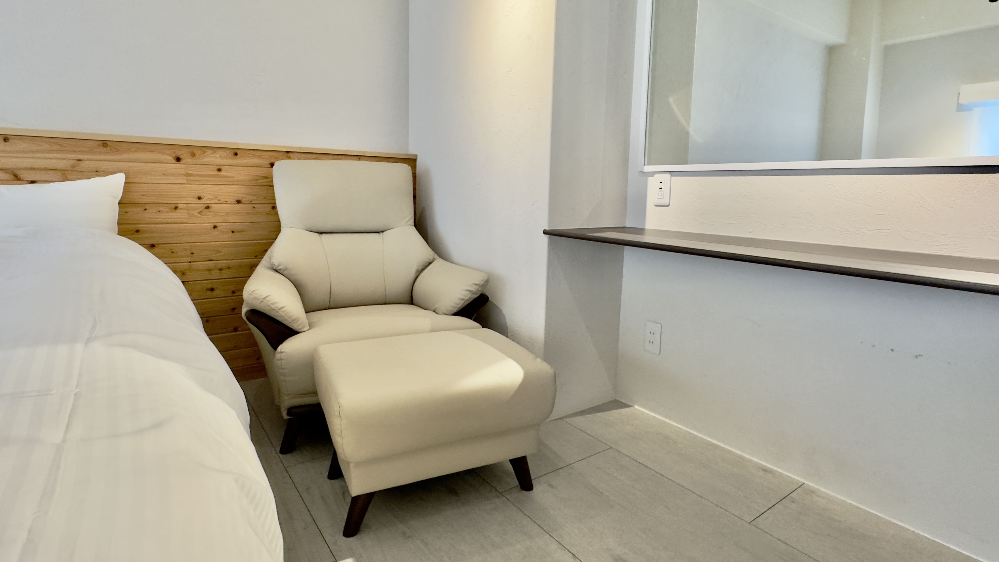 ダブルベッド1台 木のぬくもり感じられるフルリノベーションルーム