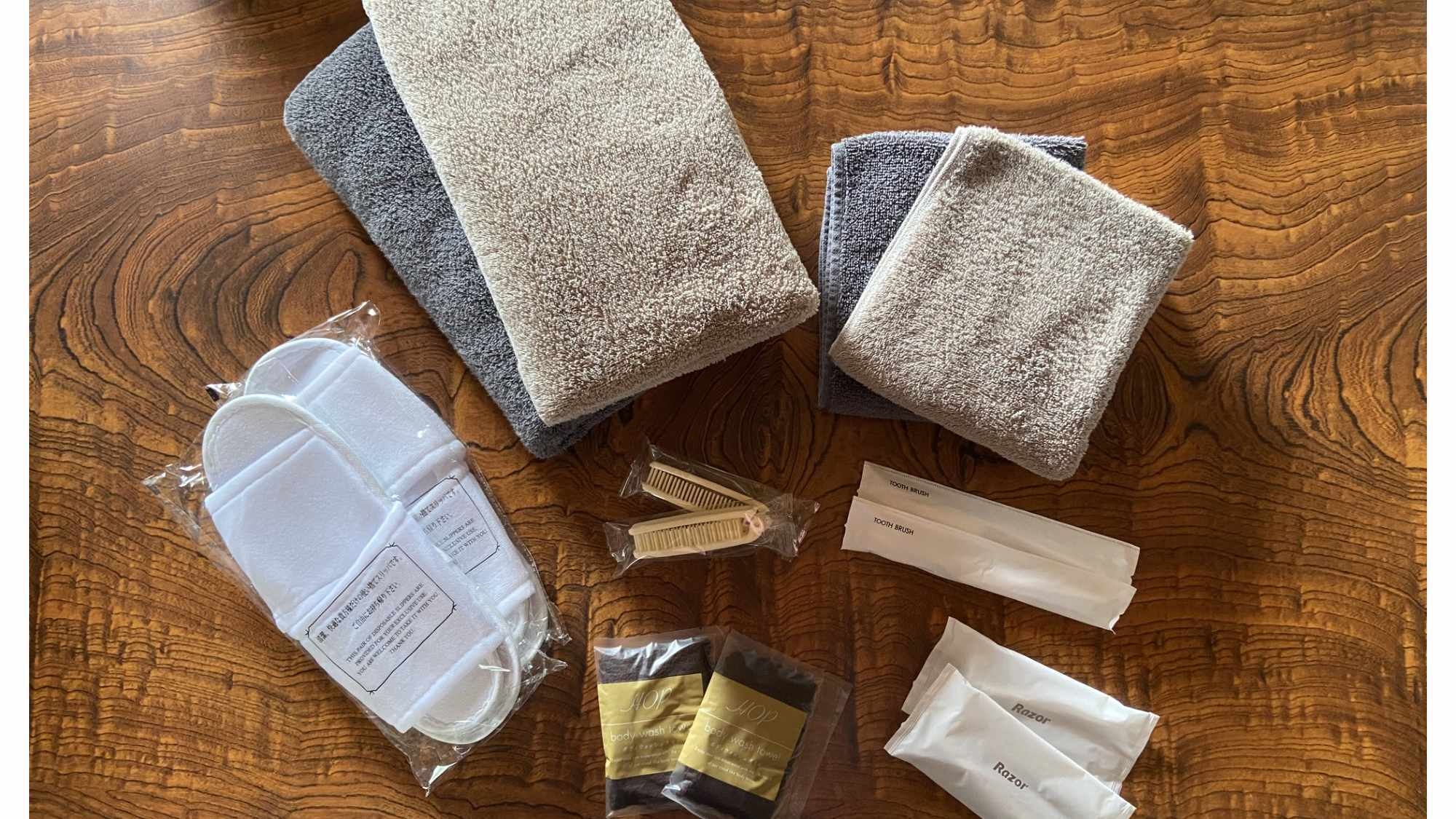 〇アメニティ:タオル・バスタオル/歯磨きセット/カミソリ/くし・ブラシ/スリッパ