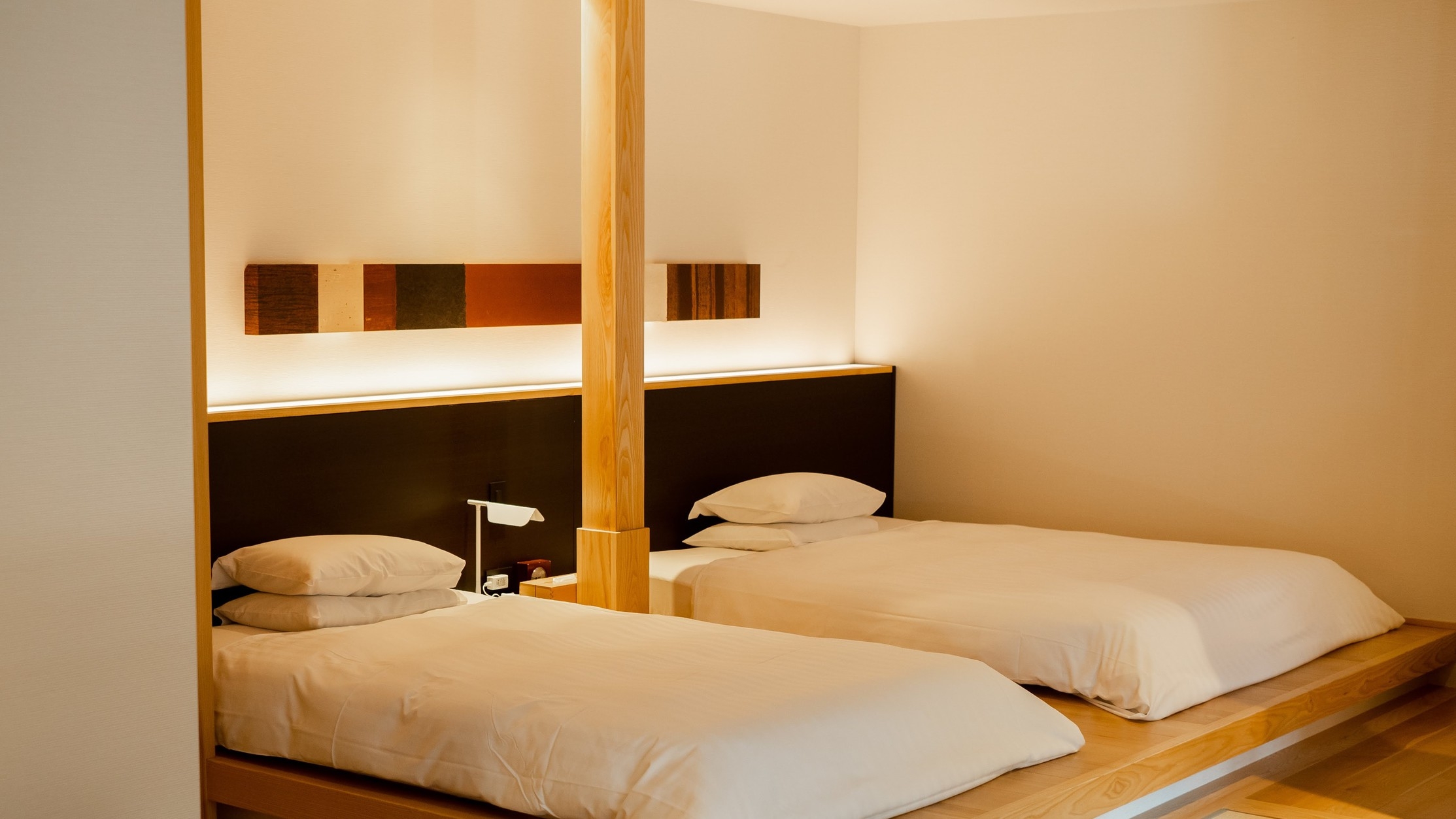 中庭に面した光差し込む寝室、ガラス戸で仕切られた和室は喧騒から離れ自分時間をゆったり過ごすことができます。宿唯一の石造りの部屋風呂で、快適におくつろぎください。