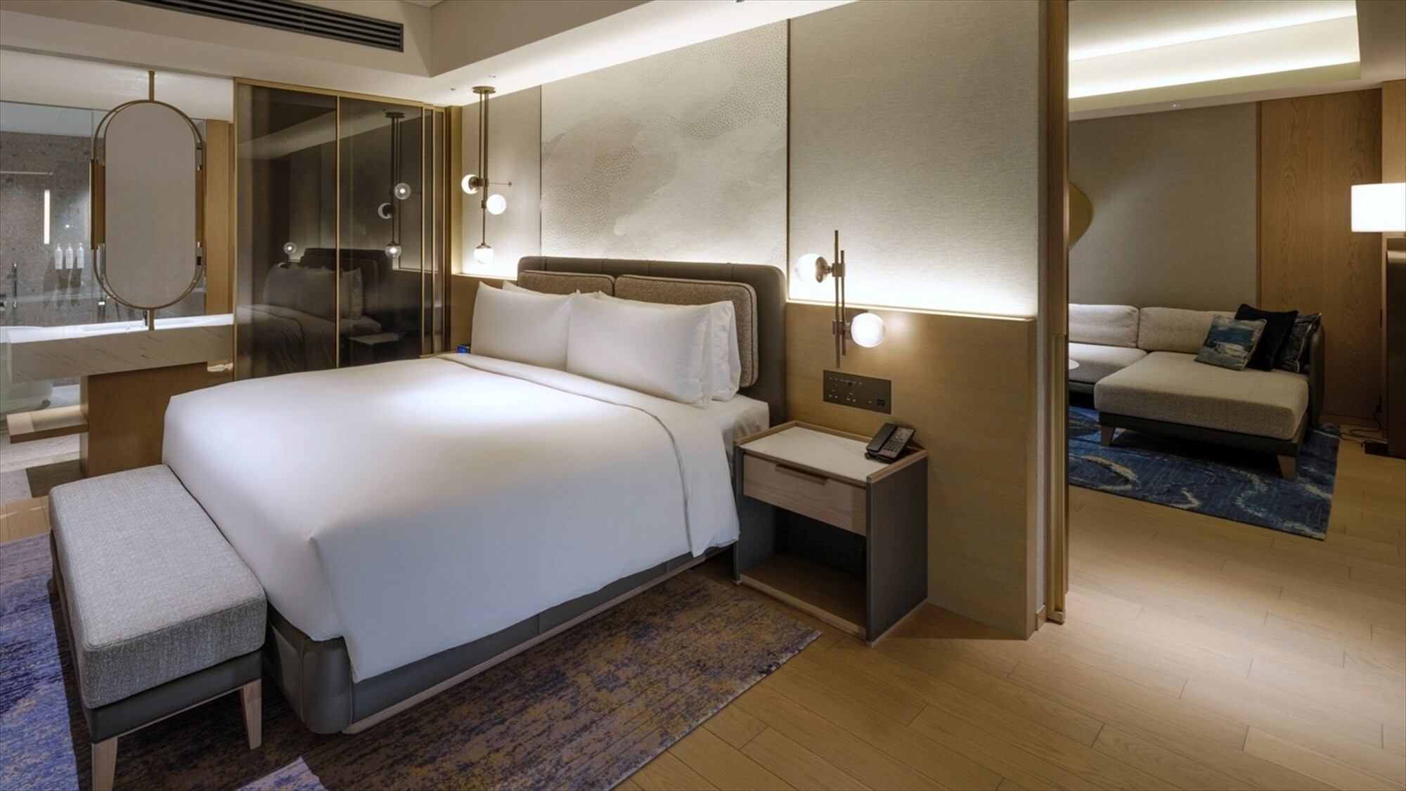 西九州新幹線かもめをご覧いただける客室です。長崎の玄関口である長崎駅や市街地を広く望んでいただけます。キングベッド+ソファベッドで最大3名様までご宿泊可能です。