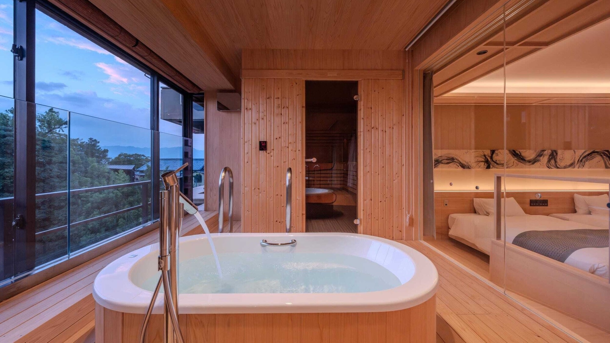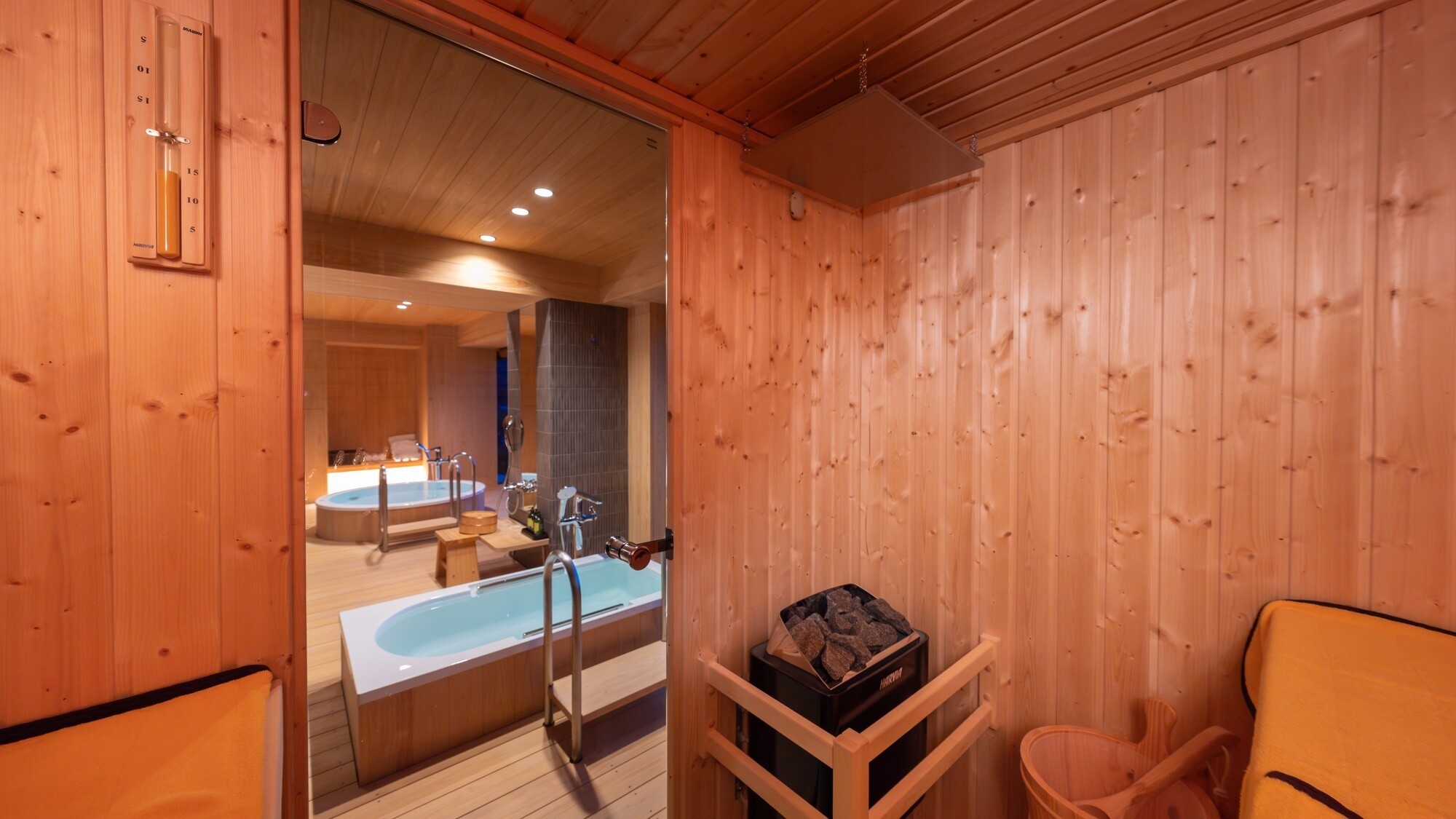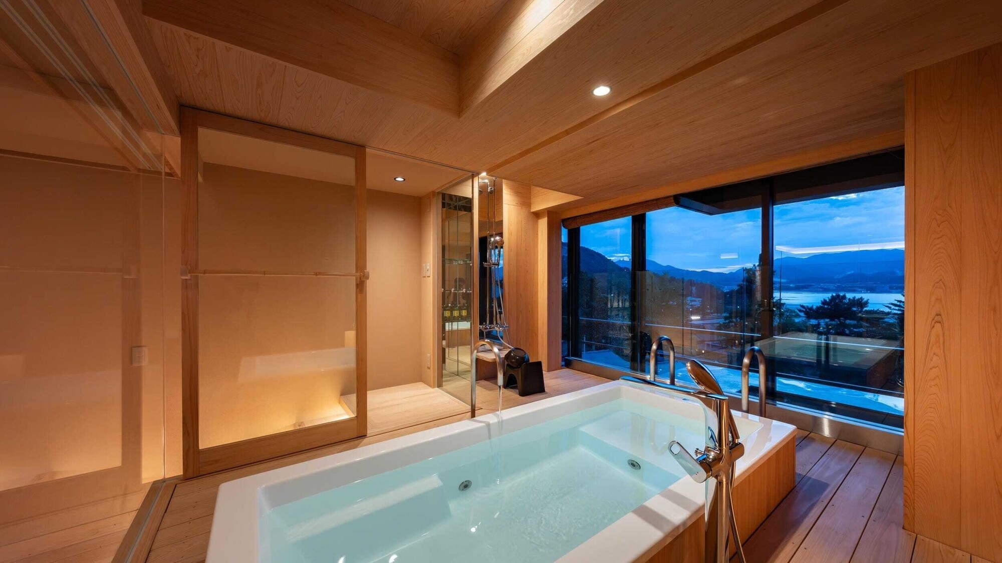 仙山と鏡池には、半露天風呂、プライベートサウナ・水風呂がございます。