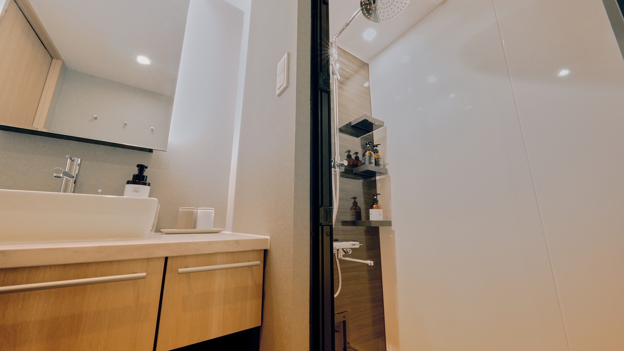 SIMONS製マットレス使用 ダブルベッド2台 バスタブ無し、シャワールームのみ