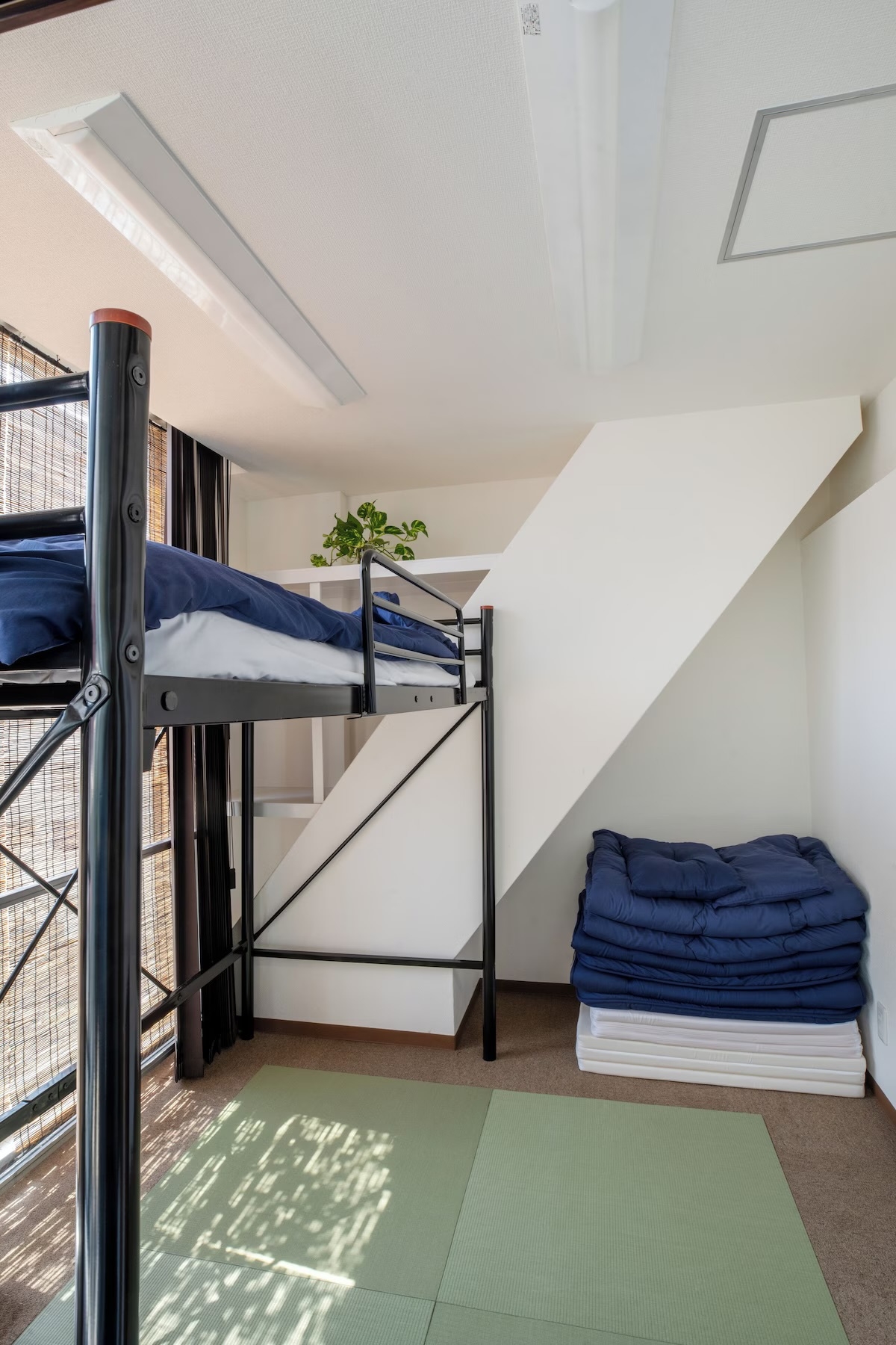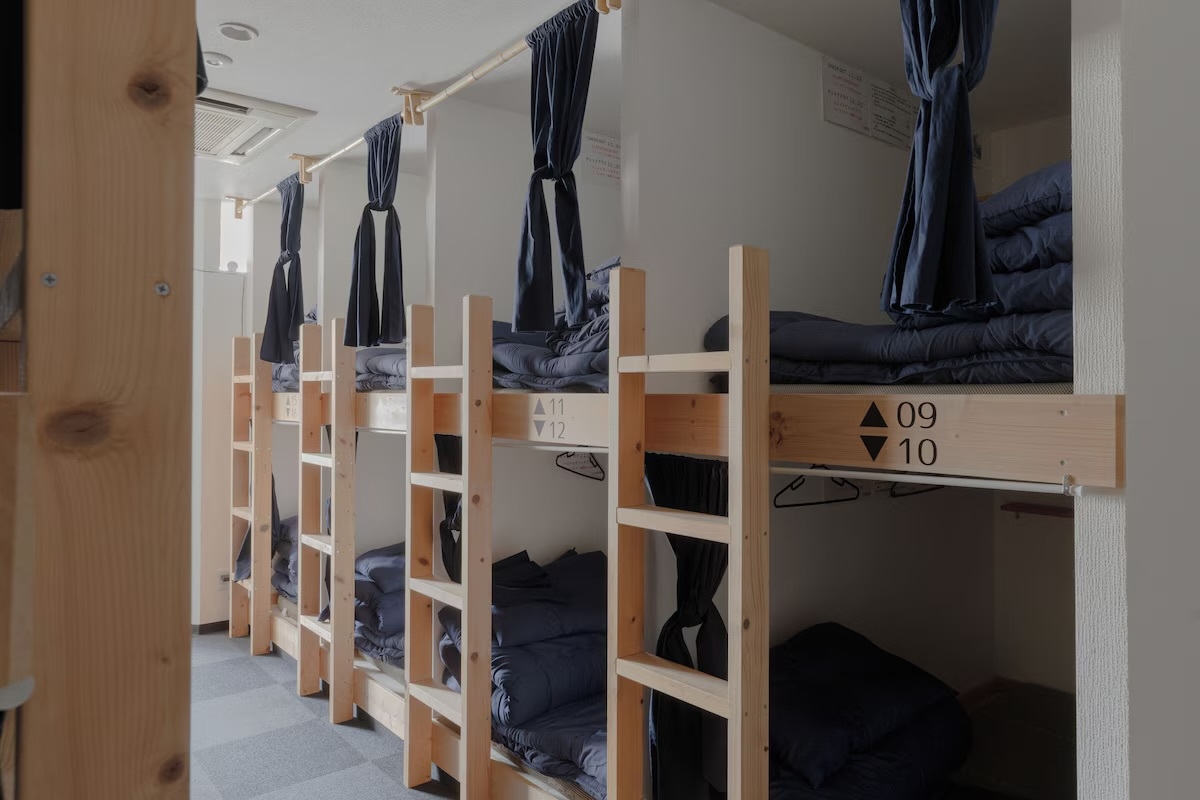 混合ドミトリー。シャワー、トイレ、キッチン共用。Wi-fi完備。