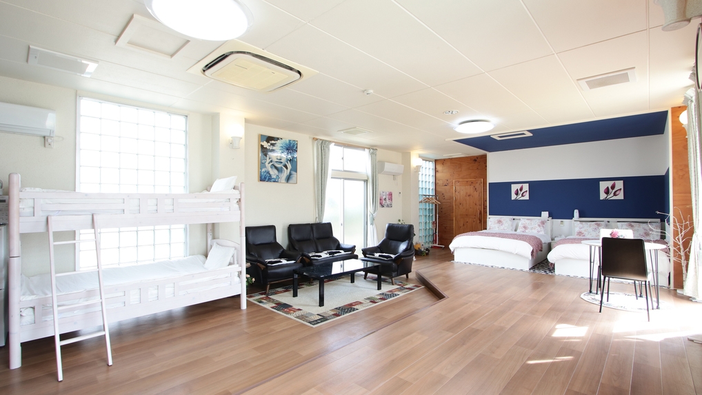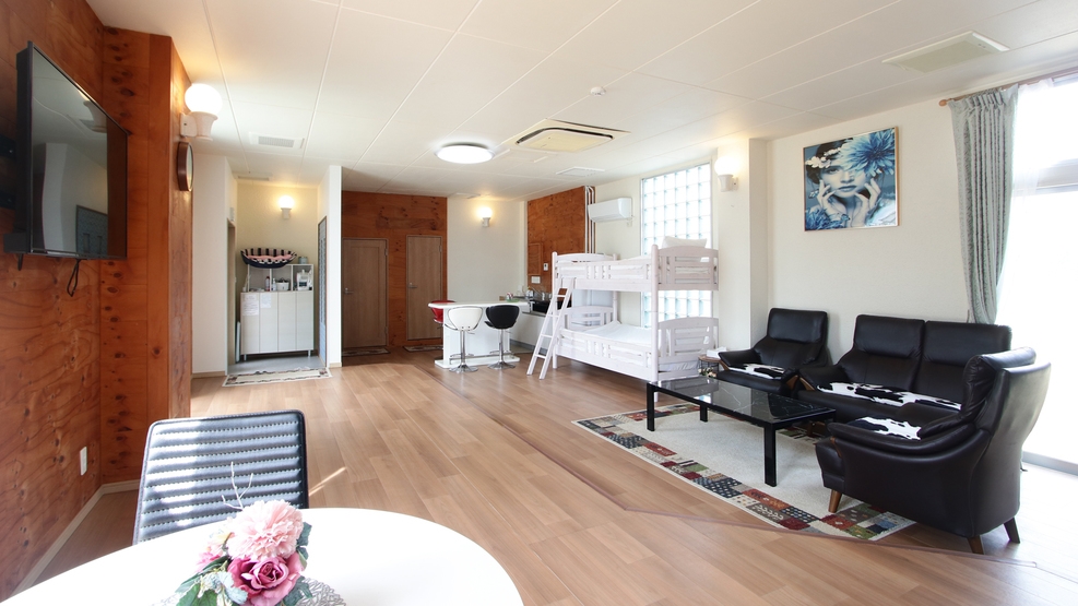 セミダブルベッド+2段ベッド+ソファベッド ユニットバス エアコン・テレビ・キッチン・冷蔵庫・電子レンジ・各種調理器具