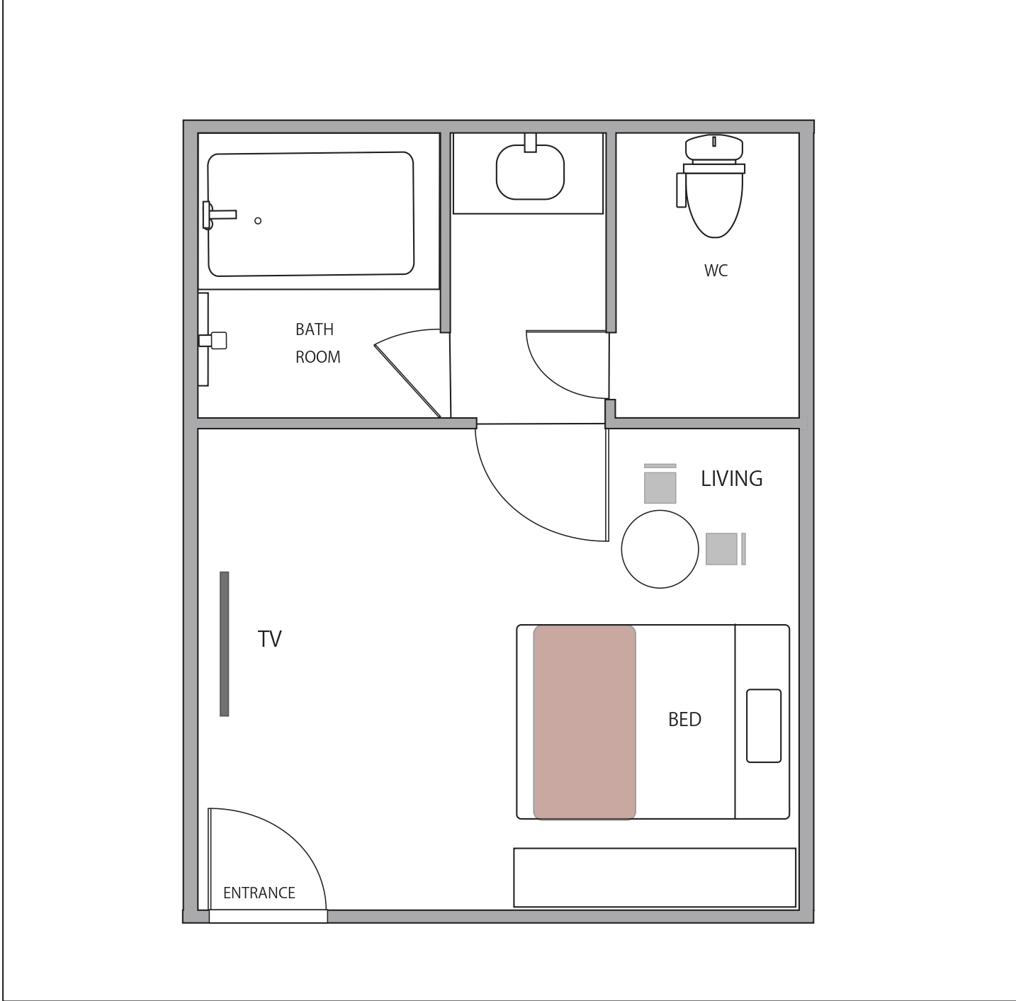 部屋設備・備品バスルーム、トイレ独立 大型テレビ カラオケ付 160センチ幅のクイーンベッドを1台配置したお部屋、カップルまたは子連れの家族に推奨するお部屋です