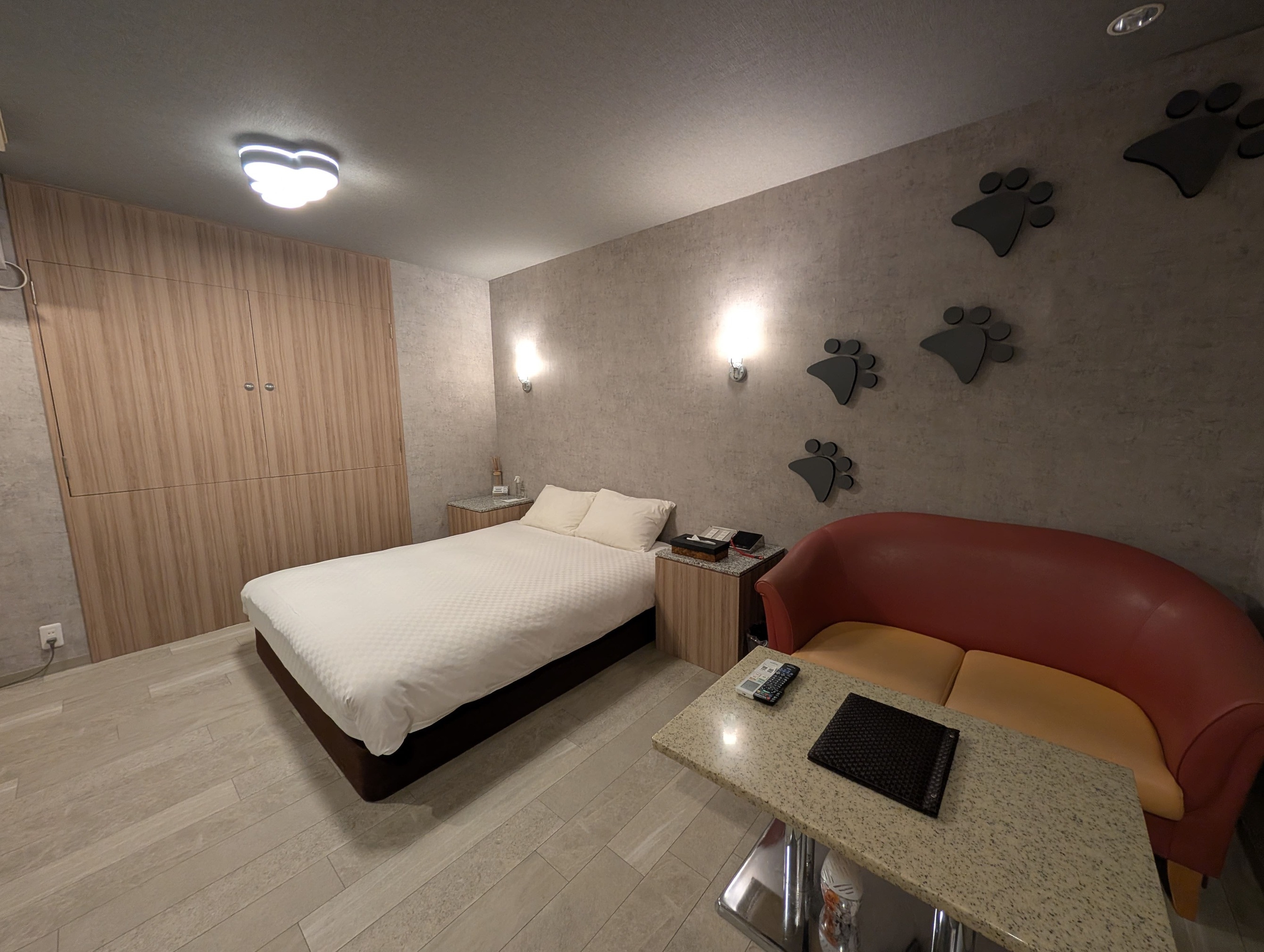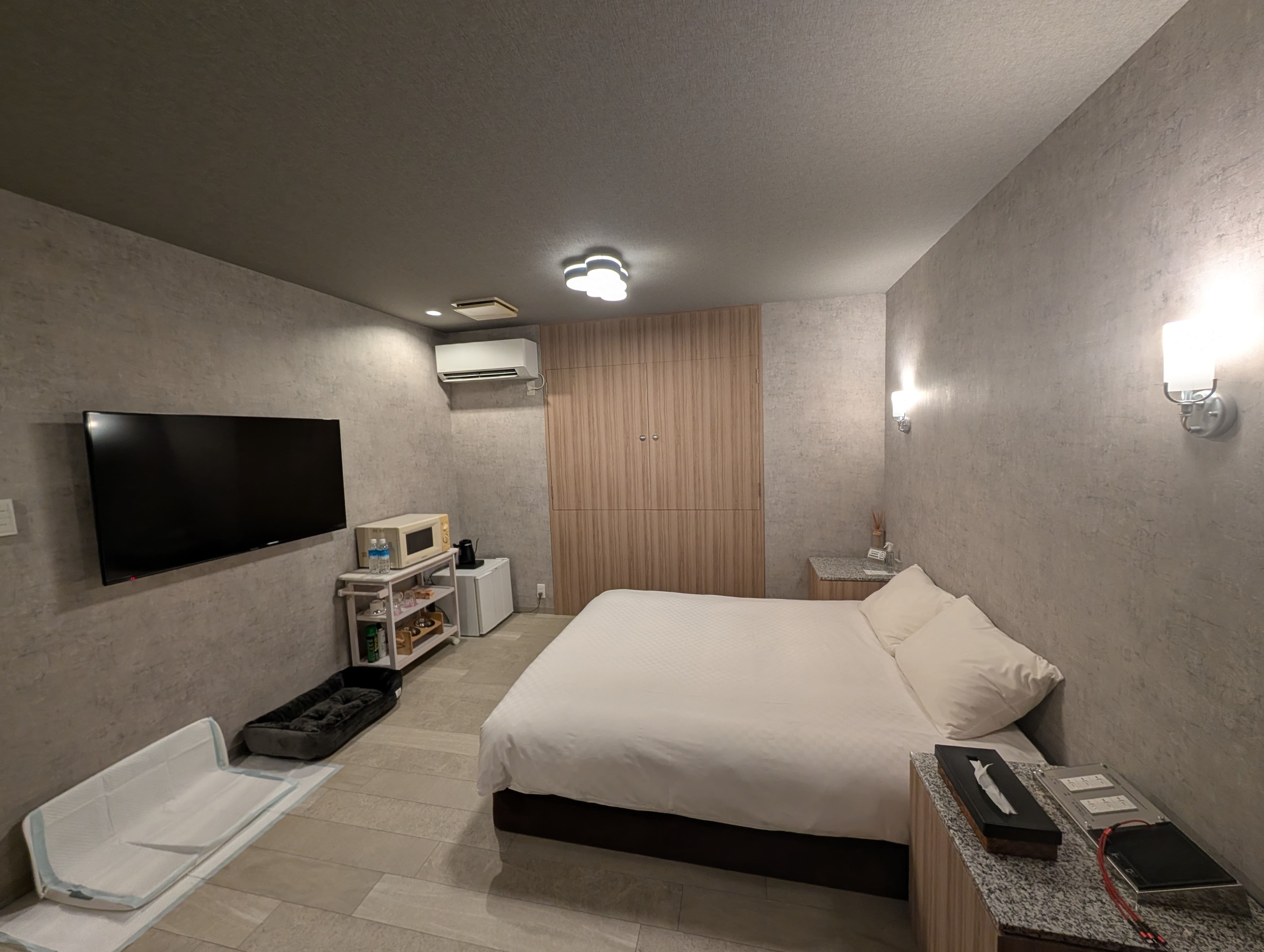 限定1室!わんちゃんと一緒に泊まれるスッキリとしたインテリアのお部屋です。クイーンベッド1台
