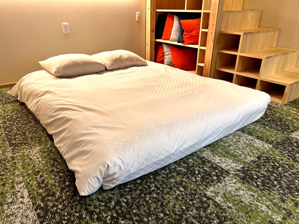 クイーンベッド1台。シンプルステイご希望のお客様にぴったり。サウナ、BBQ、焚き火不可のお部屋です