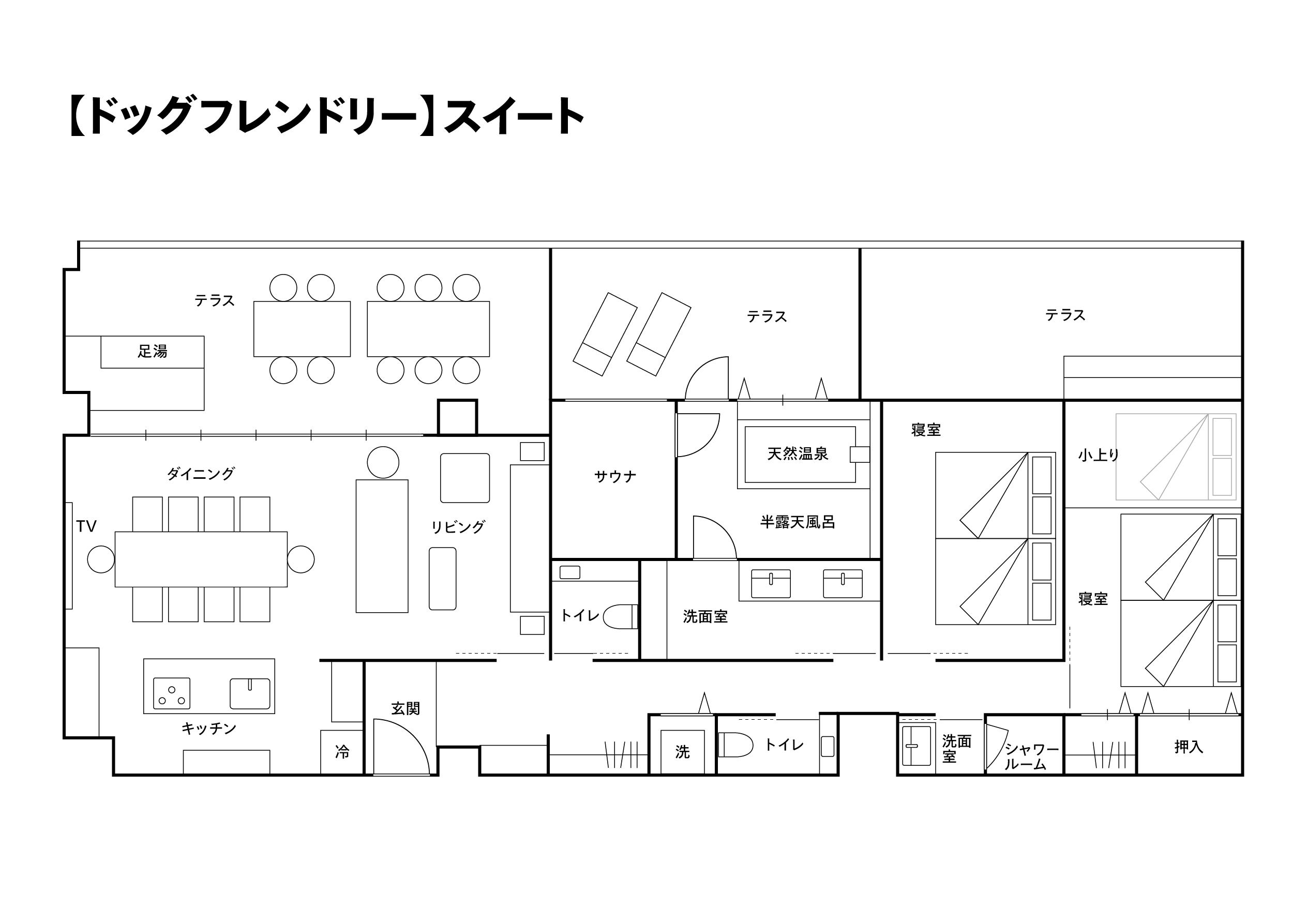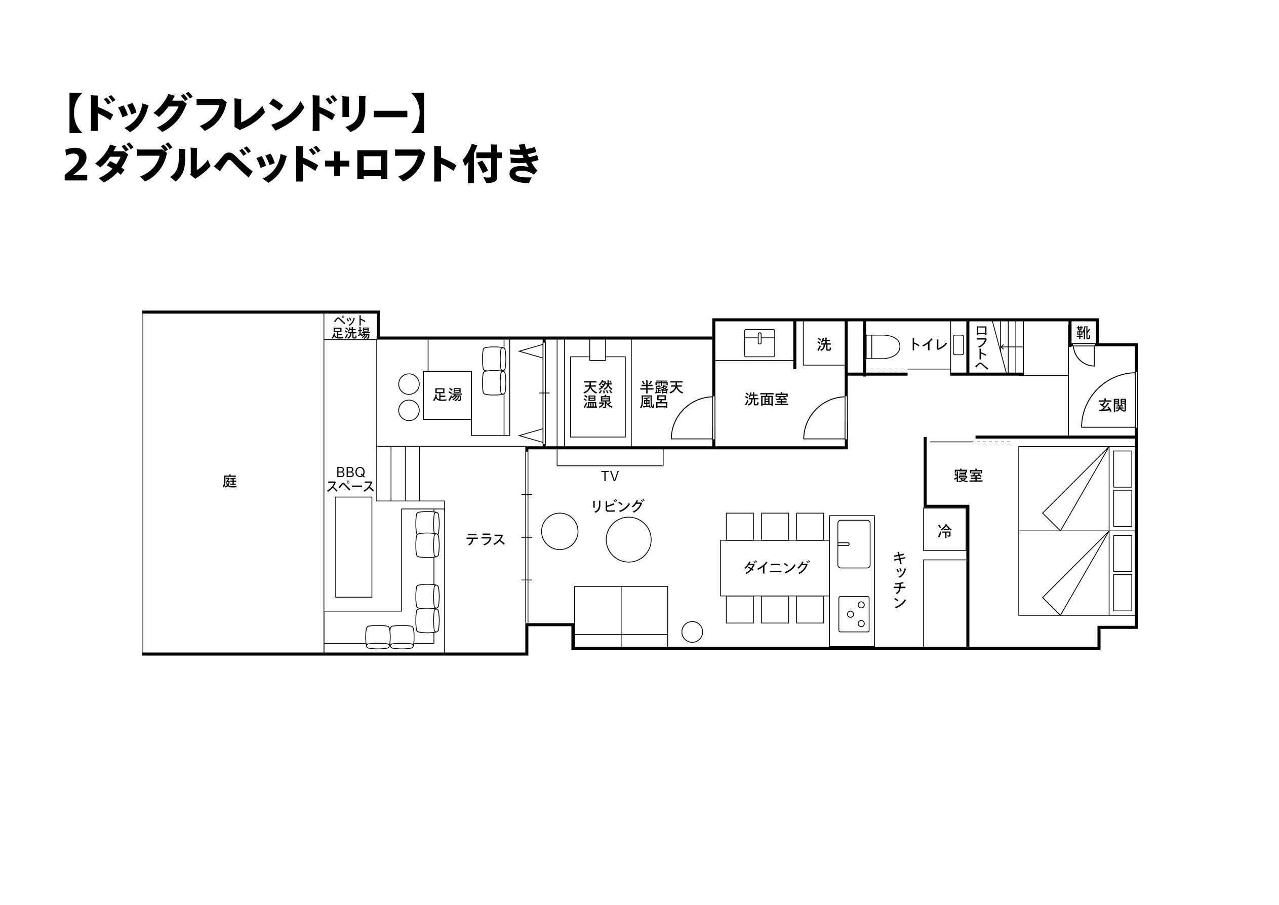 【ペット可】 ダブルベッド4台+布団1組/天然温泉/サウナ/屋根付きテラス/床暖房/食洗機/エアコン/ペットケアグッズ