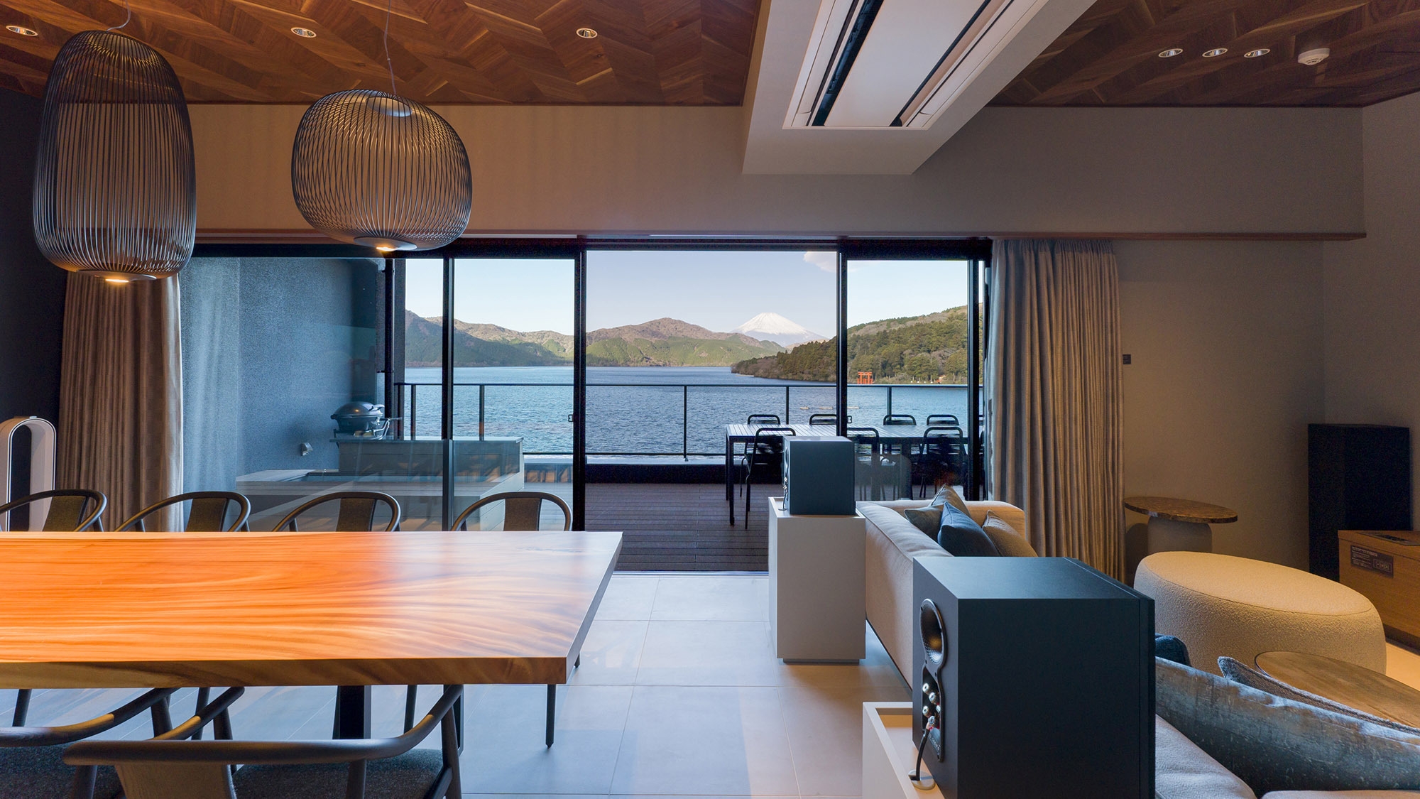 ダブルベッド4台+布団1組/天然温泉/サウナ/屋根付きテラス/床暖房/食洗機/エアコン