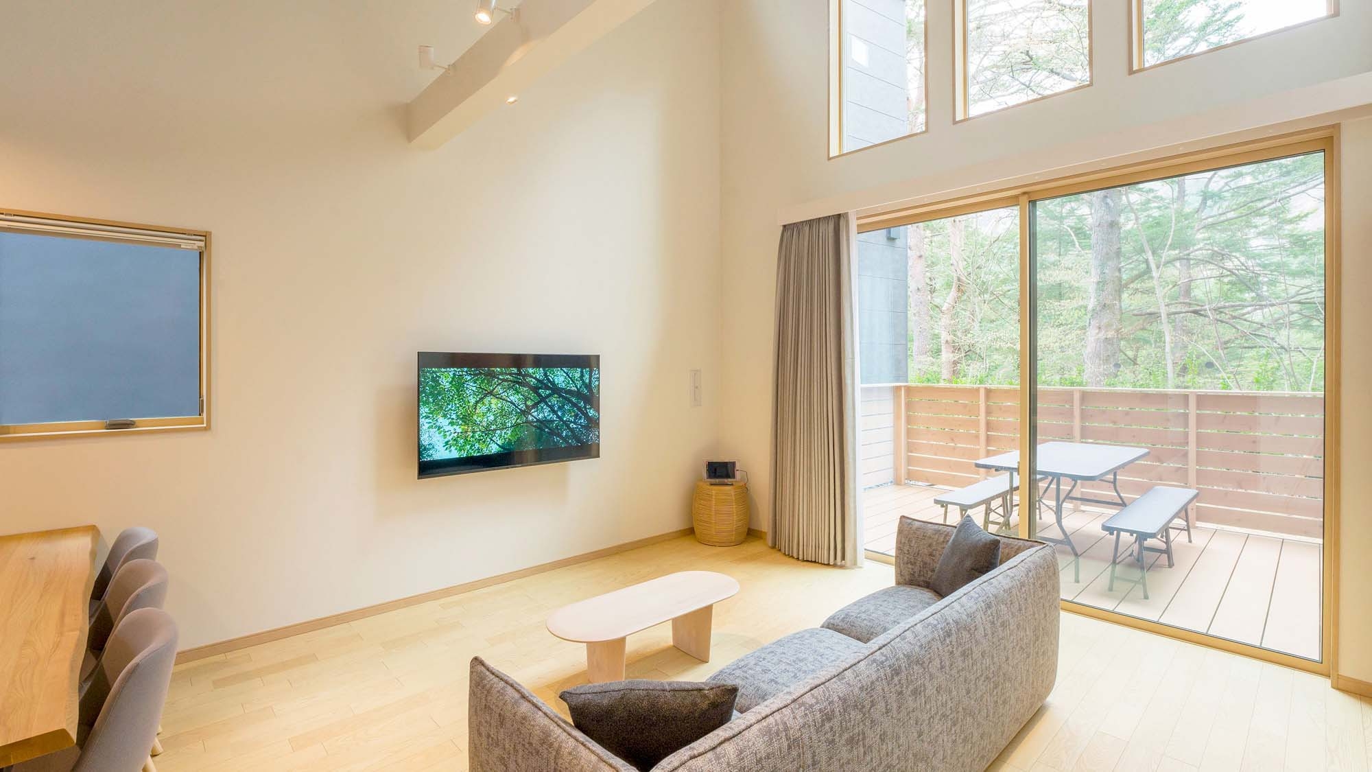 【ペット不可】 セミダブルベッド2台+敷布団4組/ドライサウナ/天然温泉/75インチTV/プロジェクター/床暖房/テラス
