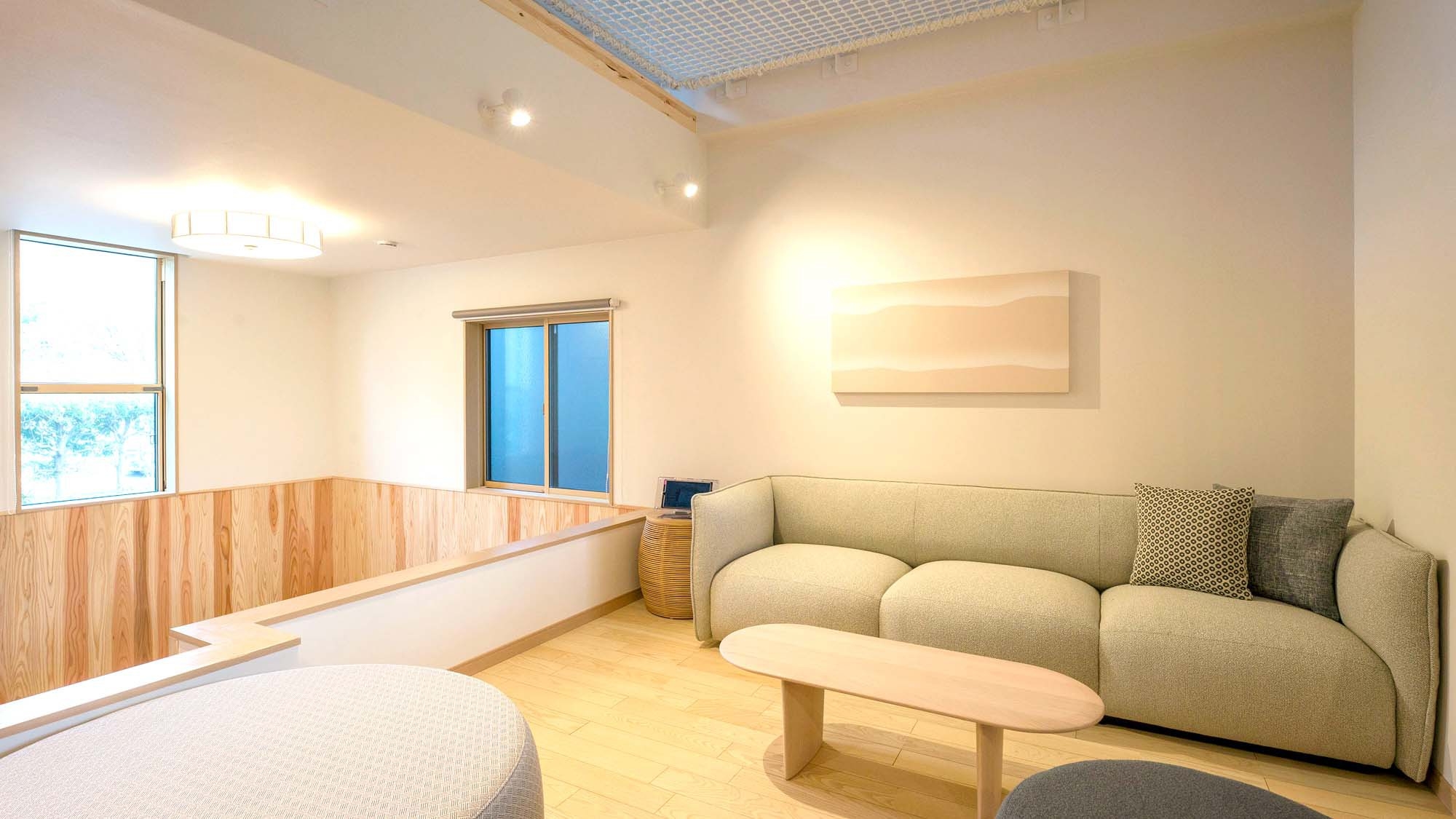 みんなで同じ時間を過ごせるワンフロアタイプ。お子様連れのファミリーやグループに使い勝手の良い客室。