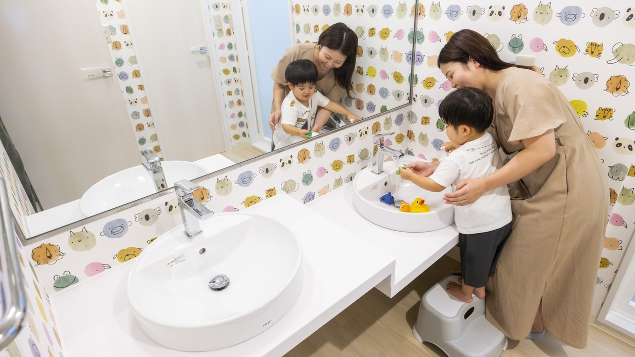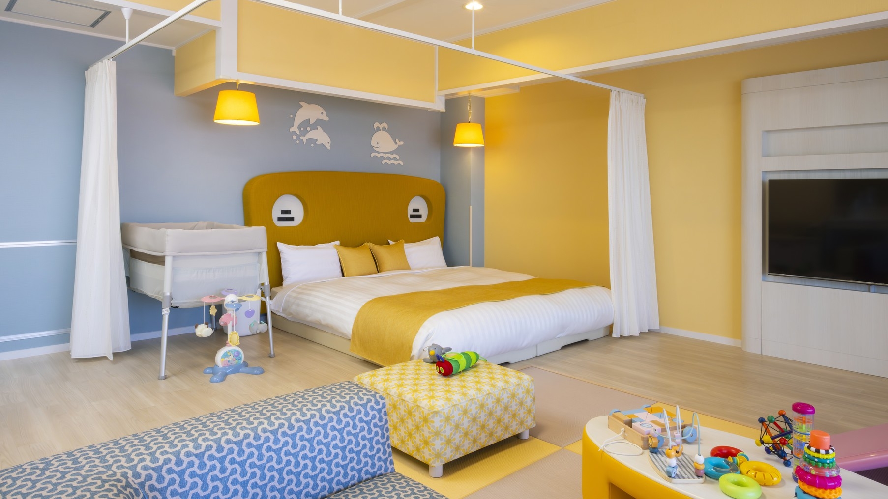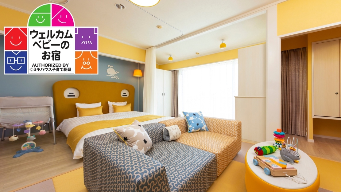 ベビーとママパパに優しいお部屋。楽しいバスグッズとベビーベッドをご用意し、 安心とくつろぎの時間をお届けします。