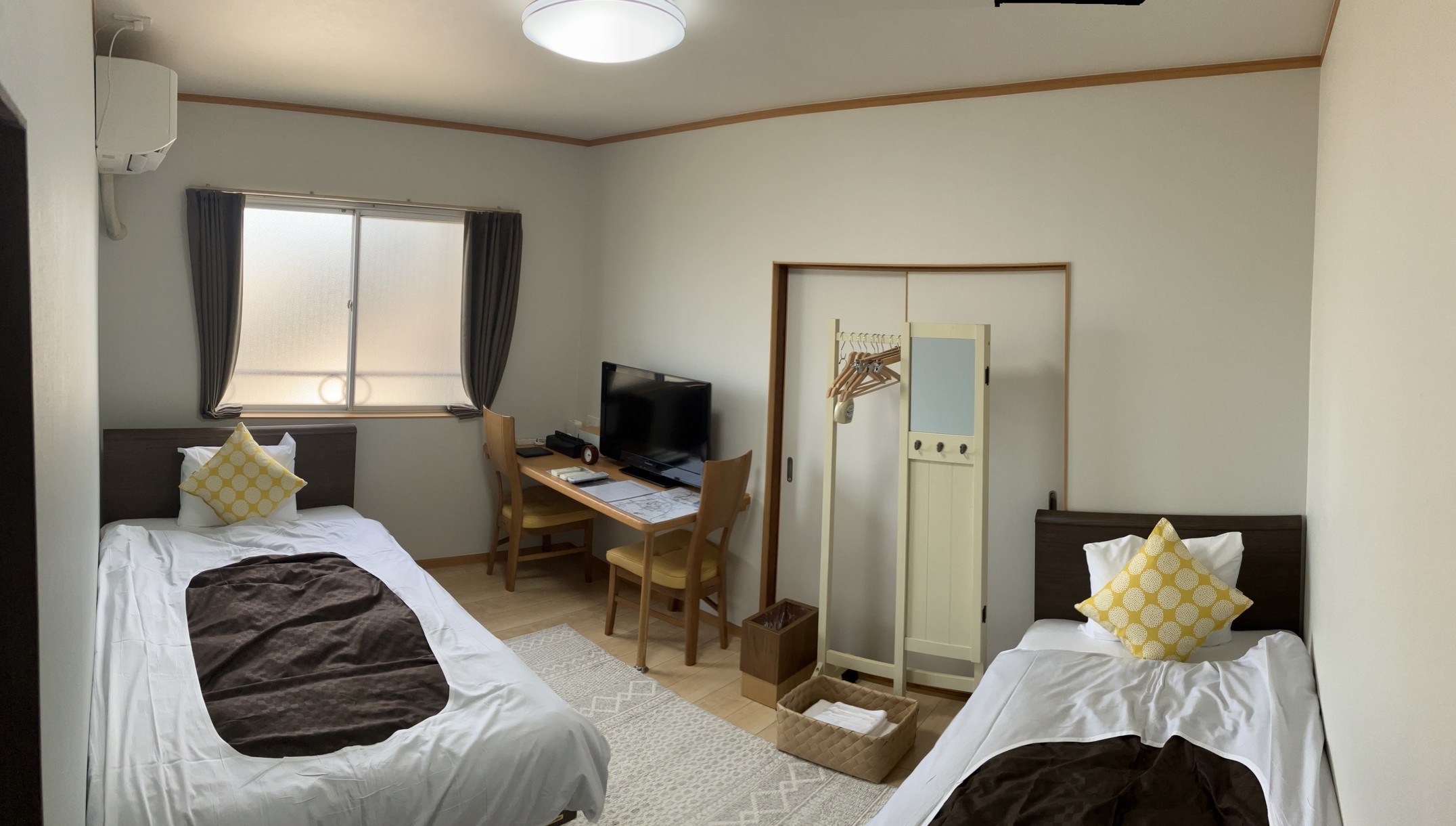 フランスベッド社製のベッド2台仕様☆湯治やワーキングステイにも最適♪落ち着いて過ごすシンプル空間♪ リモートワークや湯治に最適なシンプルなお部屋です♪