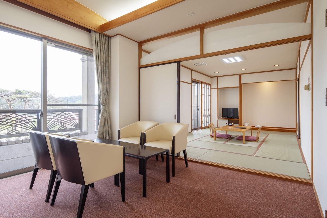 和室に洋間の付いた12畳のお部屋です。 ※寝具はお布団です、ベッドではございません。工事の為、1/14(水)〜2/20(金) 館内エレベーター利用不可。