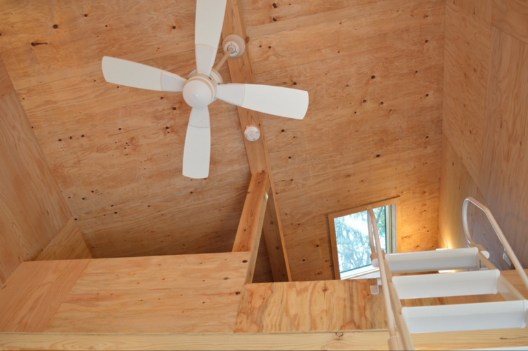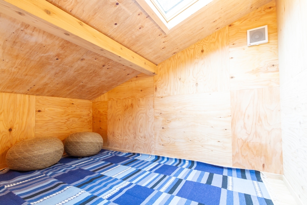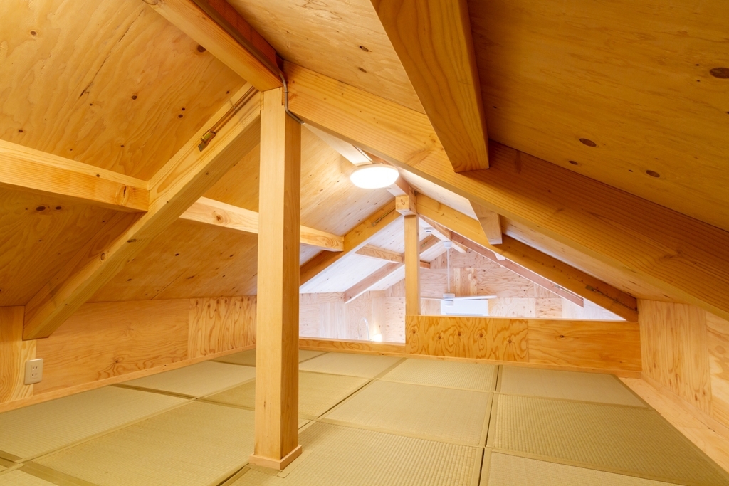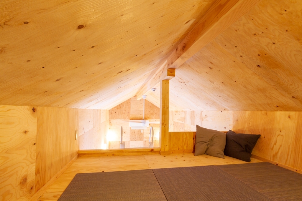 お部屋はロフトにセミダブルのマットレスとシングルサイズのお布団2組を用意しております。