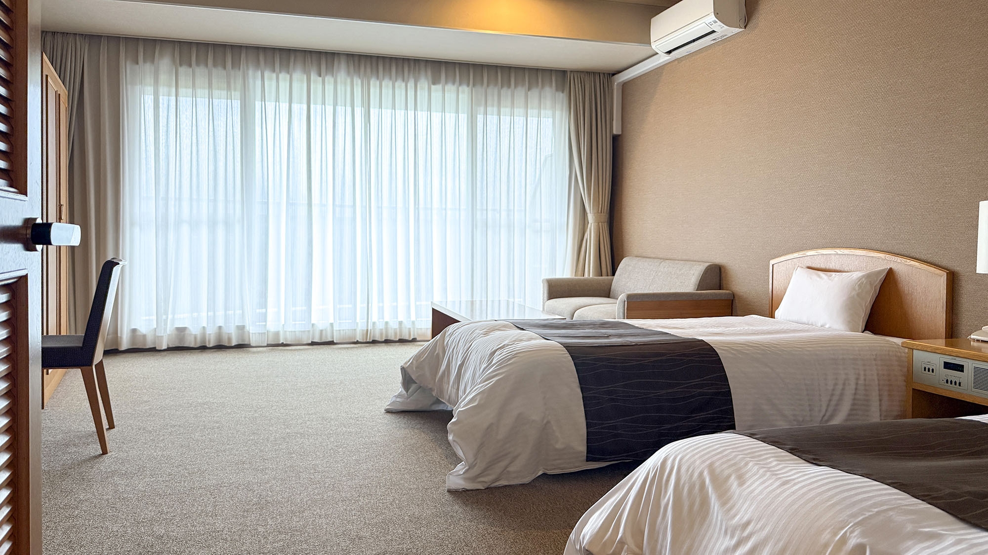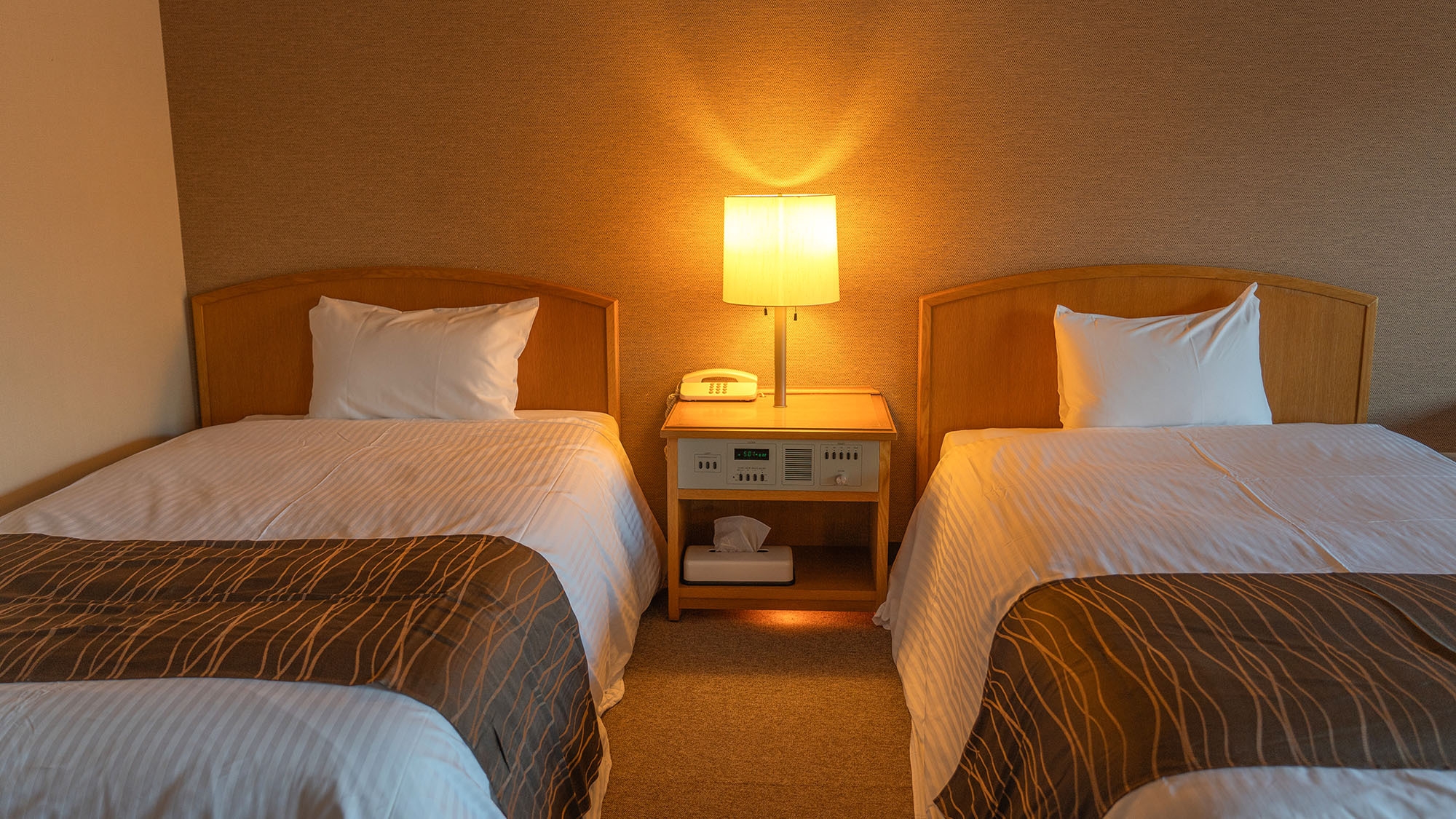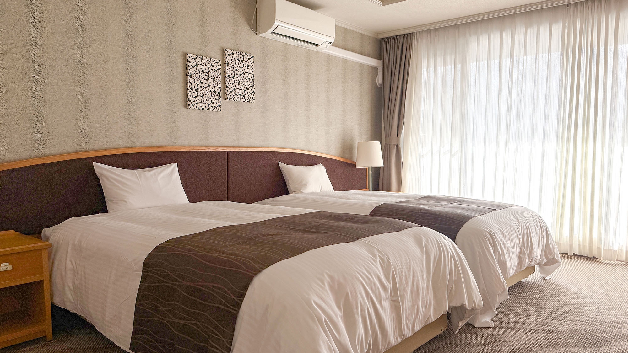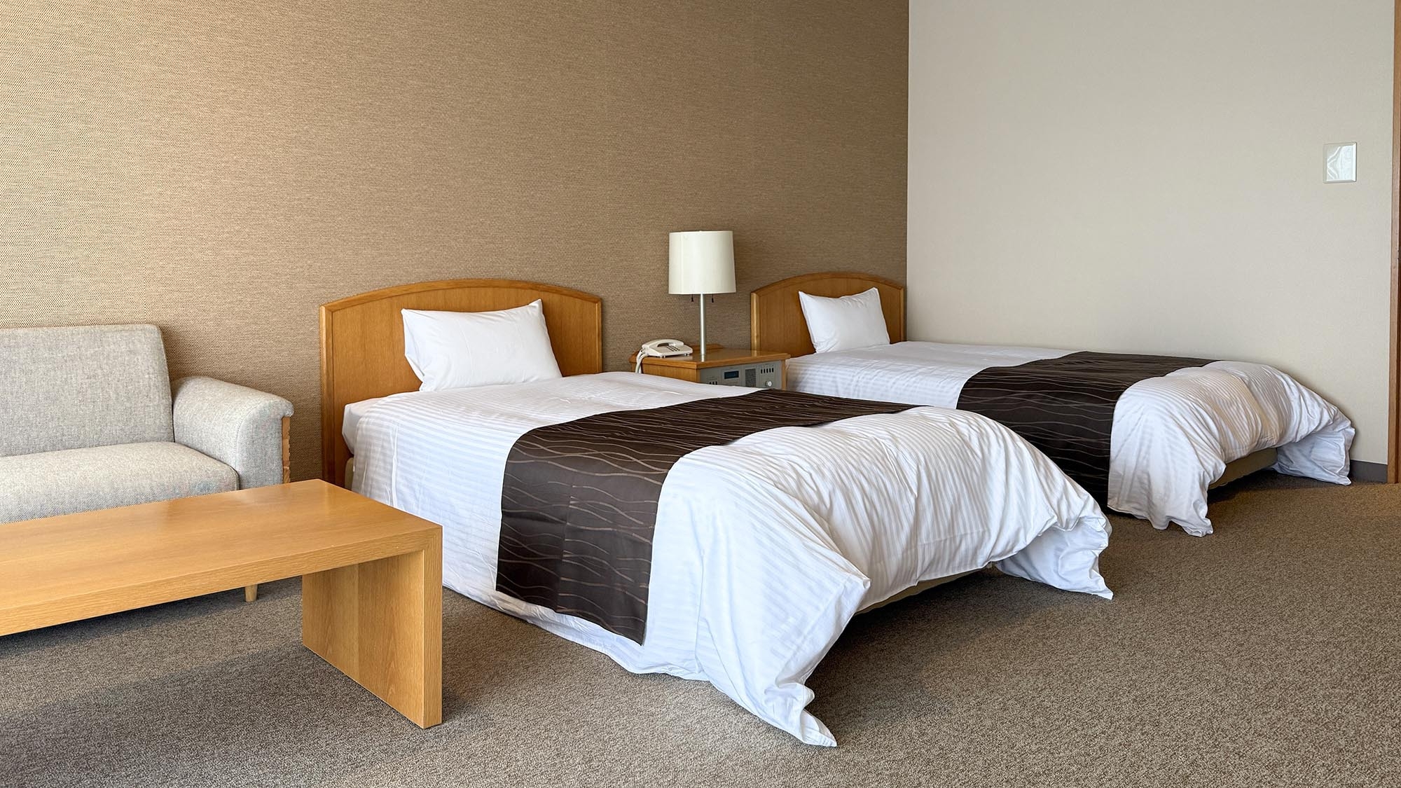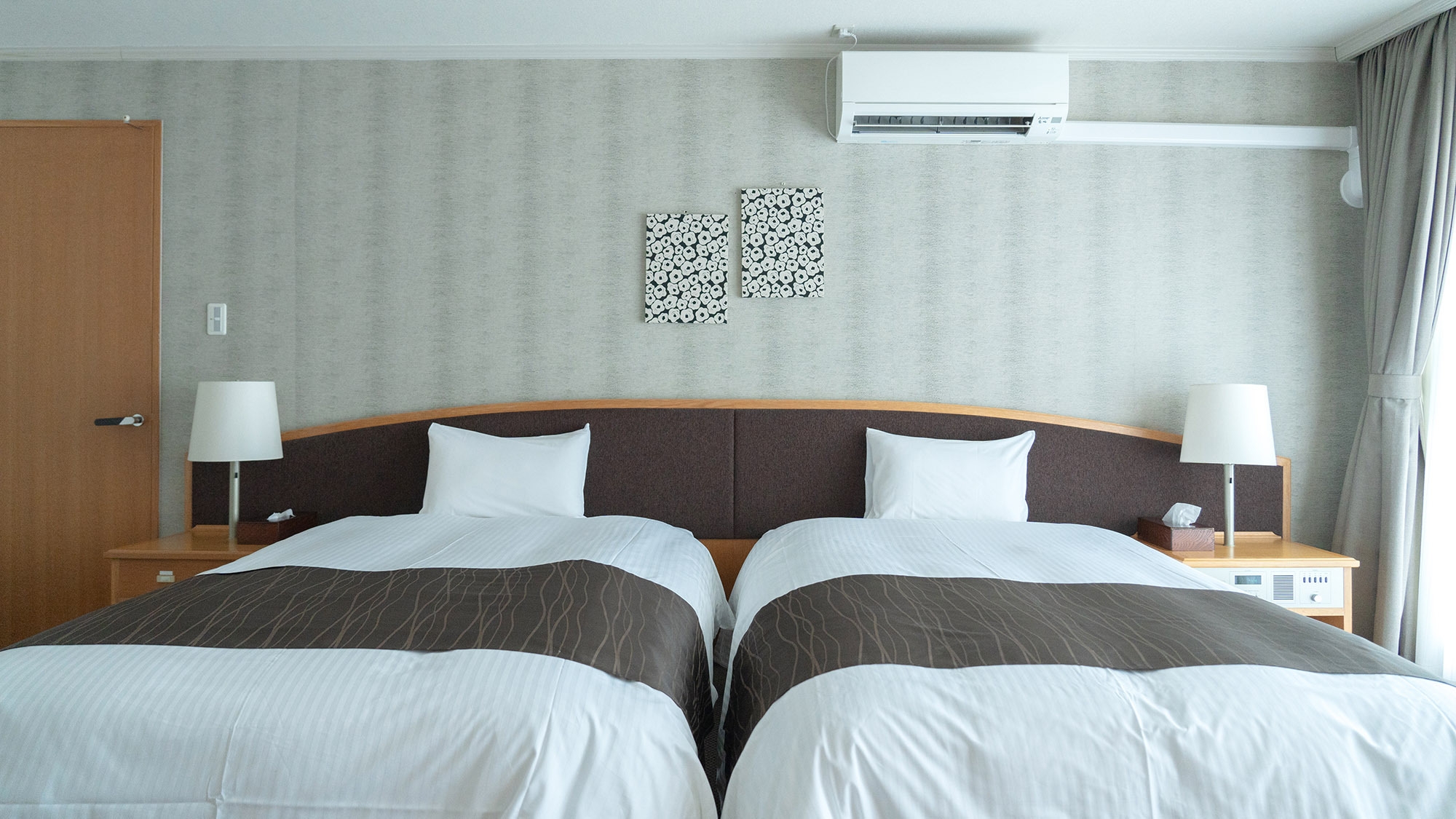 シングルベッド2台を設置したお部屋は3点式ユニットバスを設置し、お部屋でも温泉を楽しめます。