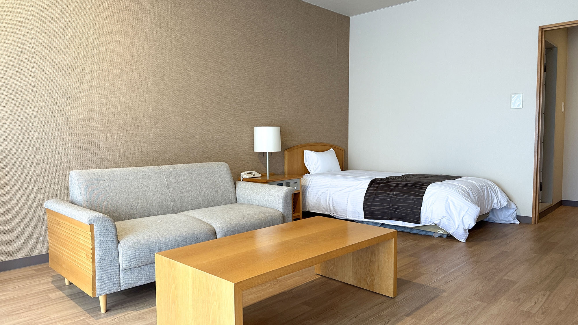 シングルながら29平米とゆとりある広さが魅力のお部屋は3点式ユニットバスを設置し、お部屋でも温泉を楽しめます。