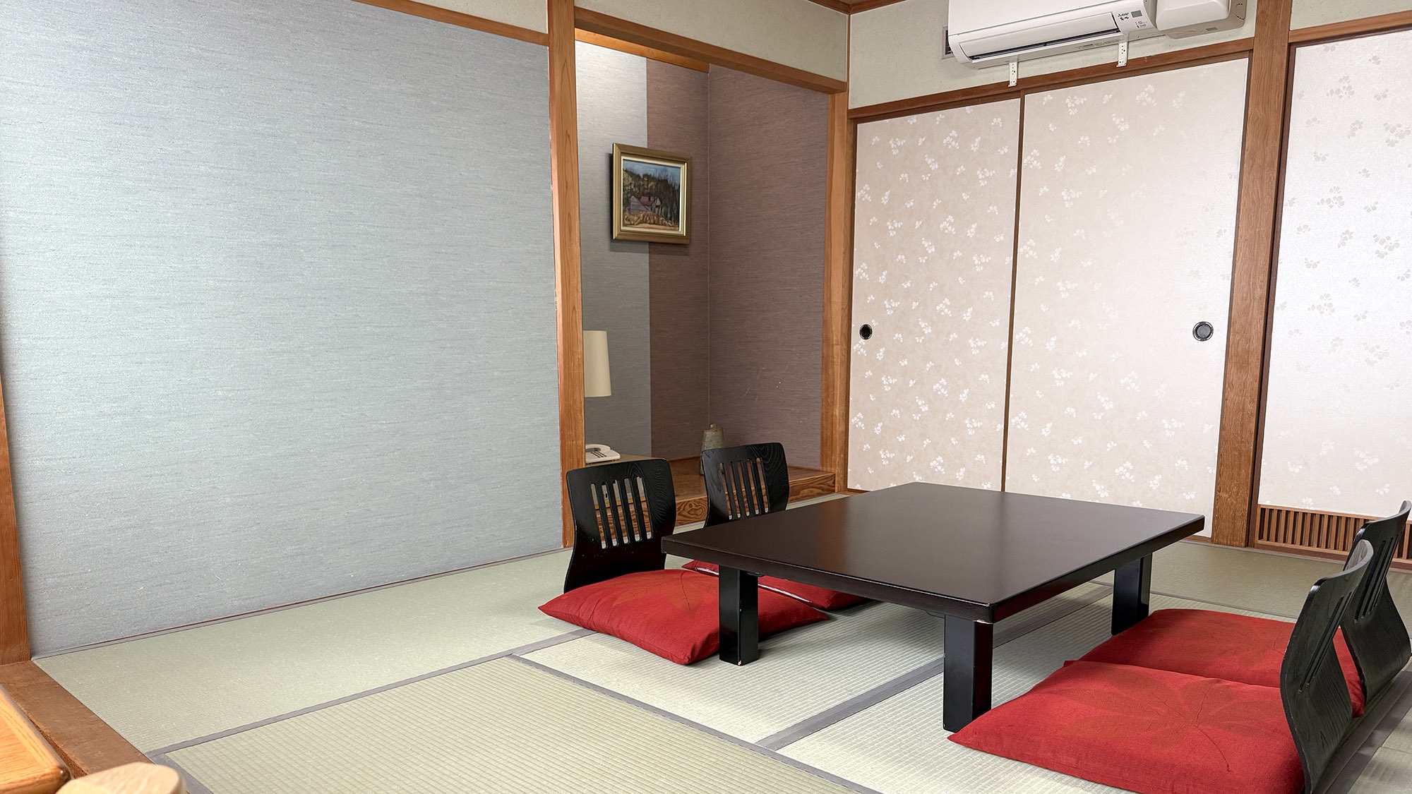 最大4名様までご利用いただける和室。四季折々の景色と広縁で温泉地を訪れた安らぎを感じられます。3点式ユニットバスを設置し、お部屋でも温泉を楽しめます。