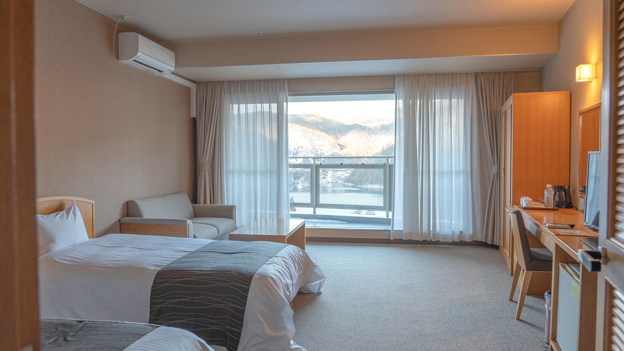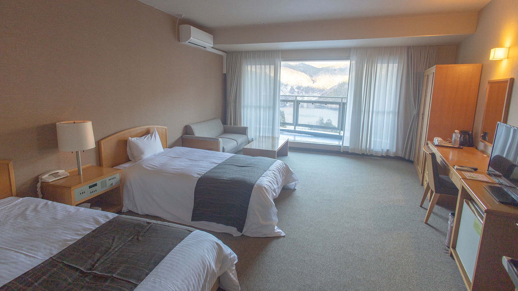 シングルやツイン、和室、和洋室などのほか、温井ダムを眺められるダム側のお部屋もございます。