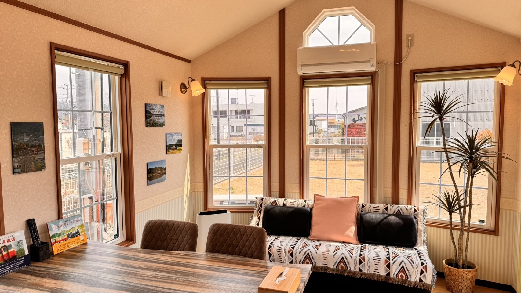 1LDKタイプのスタンダードなお部屋です。ソファーベッド、シングル布団を利用すれば最大4名様までご宿泊できます。広い専用の芝生エリアがあり、ご自由に利用できます