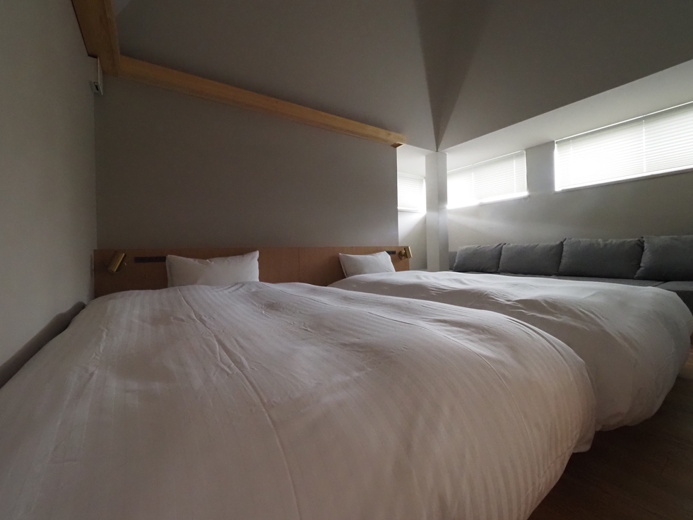 セミダブルベッド2台、ソファベッド2台の最大4名様までご利用いただけます。キッチン、洗濯機付きで倉敷周辺の旅の滞在拠点に最適です。