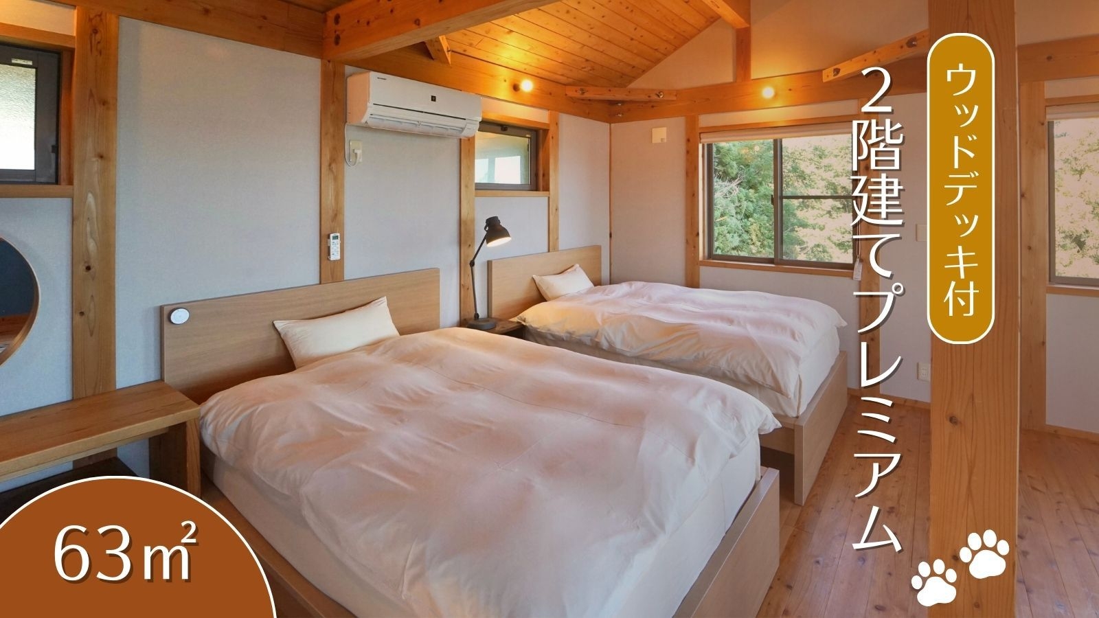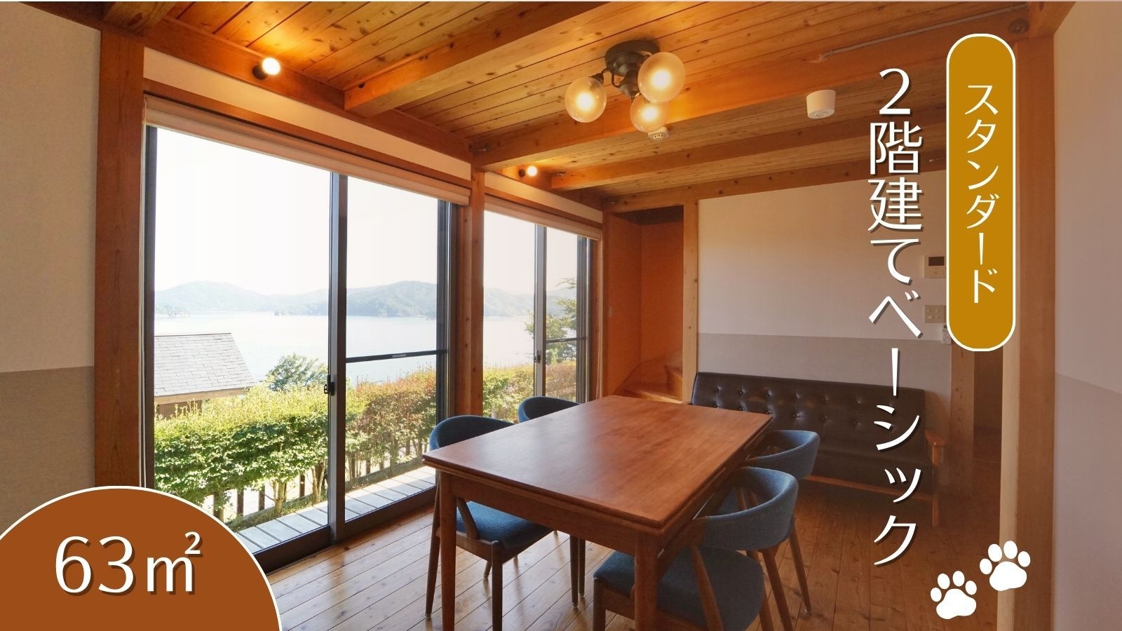 追波湾を望むオーシャンビュー。あたたかい素朴な造りで、窓から注がれる光と海風が穏やかな時間を運びます。わんちゃん安心の設備で、愛犬とのかけがえのないひとときを