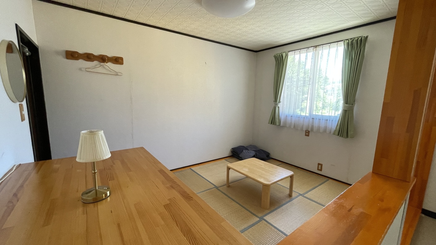 ベッドは4つ。和室にお布団を敷いて1名さま利用可能。1-5名さま向けのお部屋です。
