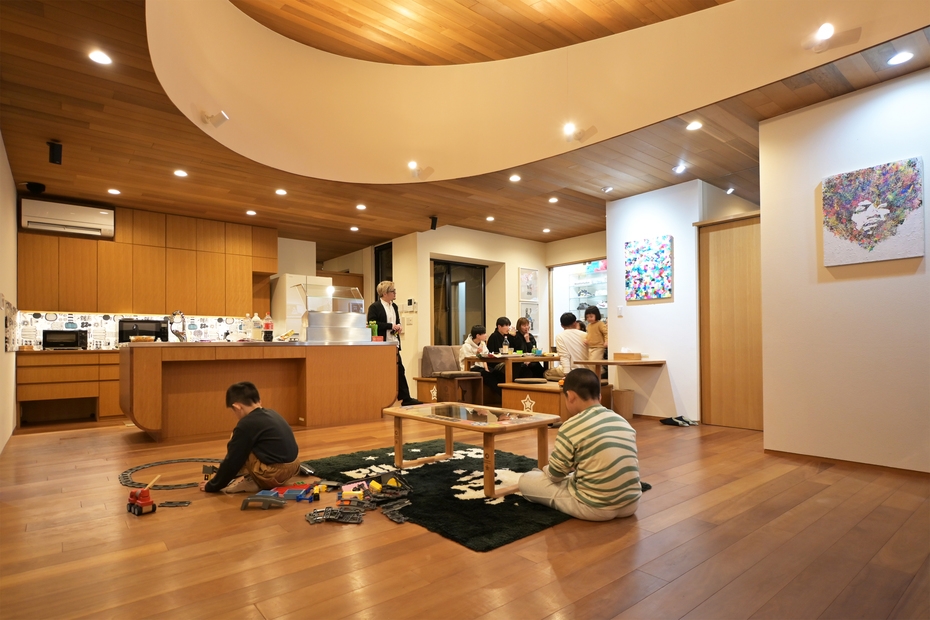 ・キッチンで料理を作り、作品に囲まれた食卓でにぎやかに過ごす