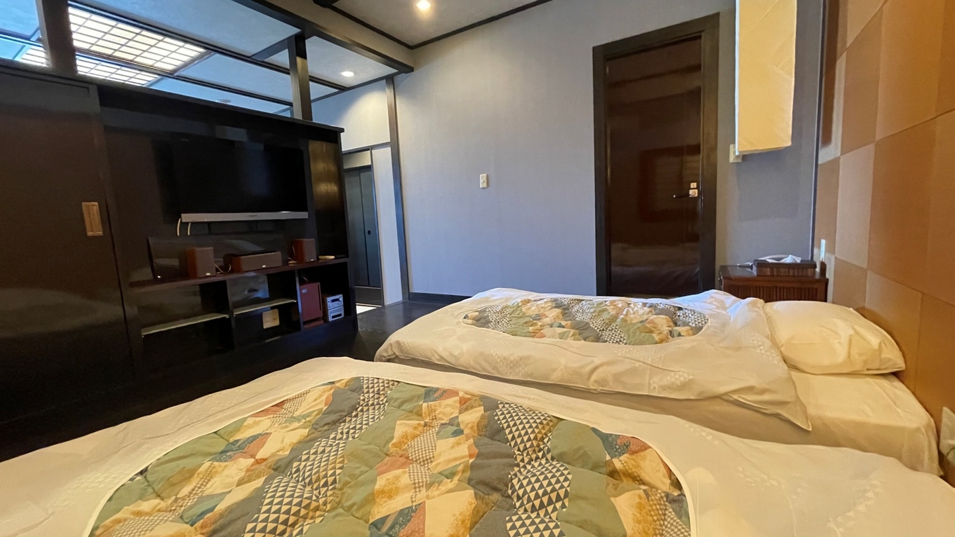オーシャンビューの和洋室です。展望風呂、トイレはセパレート ツインベッドのお部屋