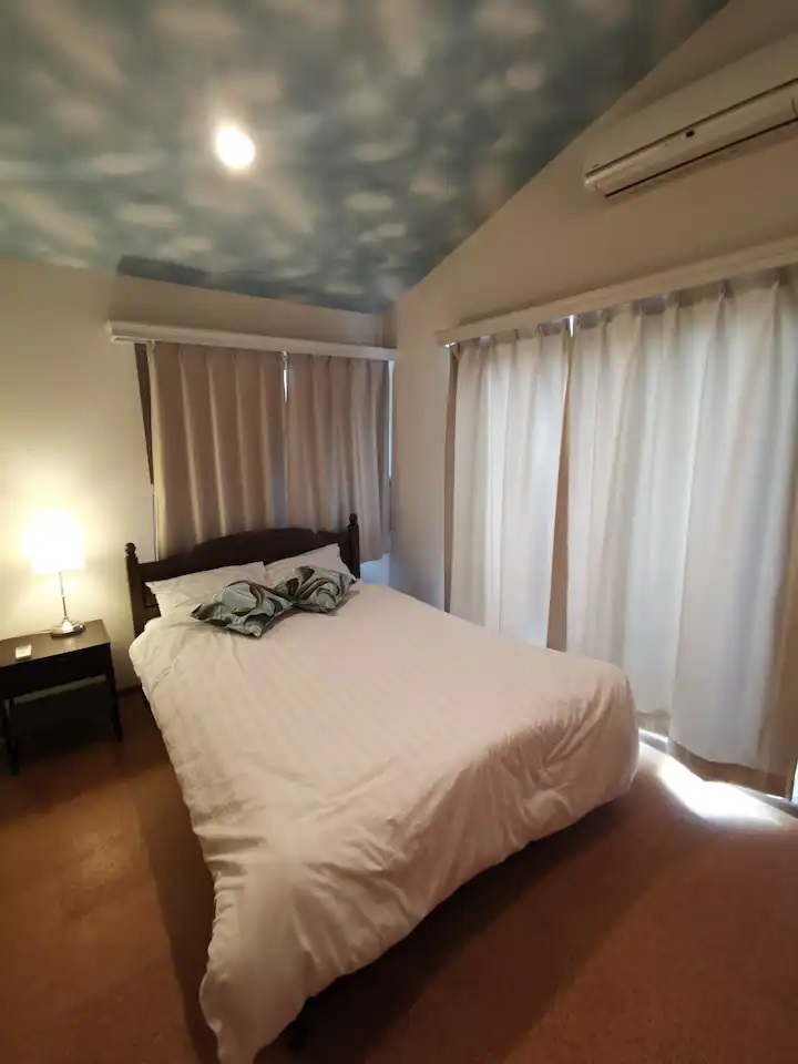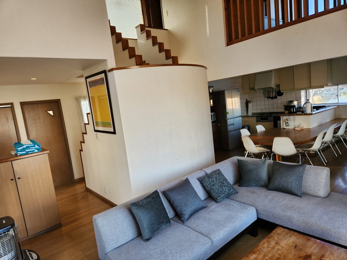 一棟貸切のデザイナーズハウスです。定員は2〜9名、無料の駐車場は3台停められます。ダブルベッドの寝室は2部屋、キングベッドの寝室は1部屋、和室にも布団の用意があります。お食事の用意はございません。室内キッチンと屋外BBQをご利用になれます。炭や着火剤、食材はご持参ください。BBQスペース、1階ウッドデッキ、2階パティオ、外シャワー、外トイレリビング、ダイニング、キッチン、バスルーム、室内トイレ、ベッドルーム3、和寝室布団3組■ベッドルーム■キングベッド1、ダブルベッド2■設備・備品■3口ガスコンロ、冷凍冷蔵庫、炊飯器、オーブンレンジ、トースター、コーヒーメーカー、調理器具一式、食器類、洗剤、スポンジ、キッチンタオル、油、塩、胡椒など65インチTV、ブルーレイプレイヤー、ドライヤー調味料は、塩、コショウ、サラダ油を常備しています。■BBQ機材■ガス式BBQグリル、炭式BBQ台、トング、ライター■アメニティ■バスタオル、フェイスタオル、シャンプー、コンディショナー、ボディソープ、歯ブラシセット