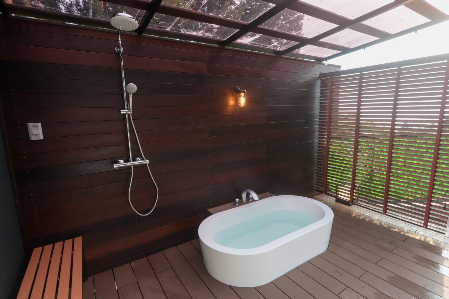 サウナ、半露天風呂付き、室内ロースターあり